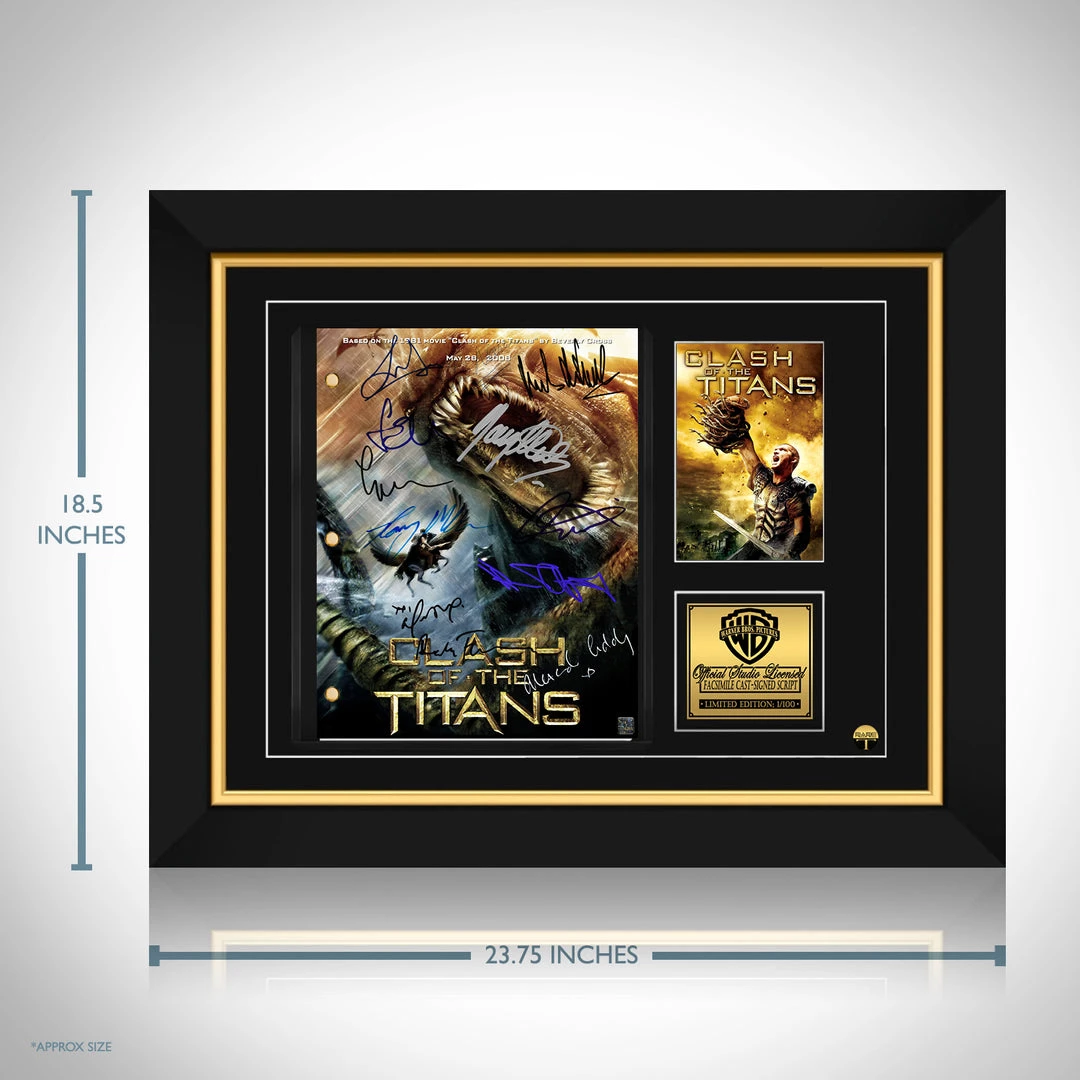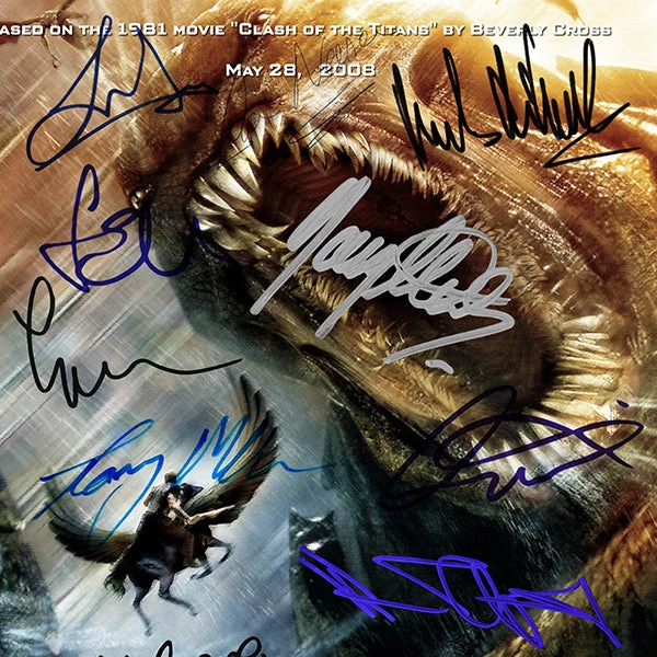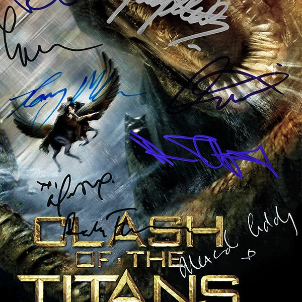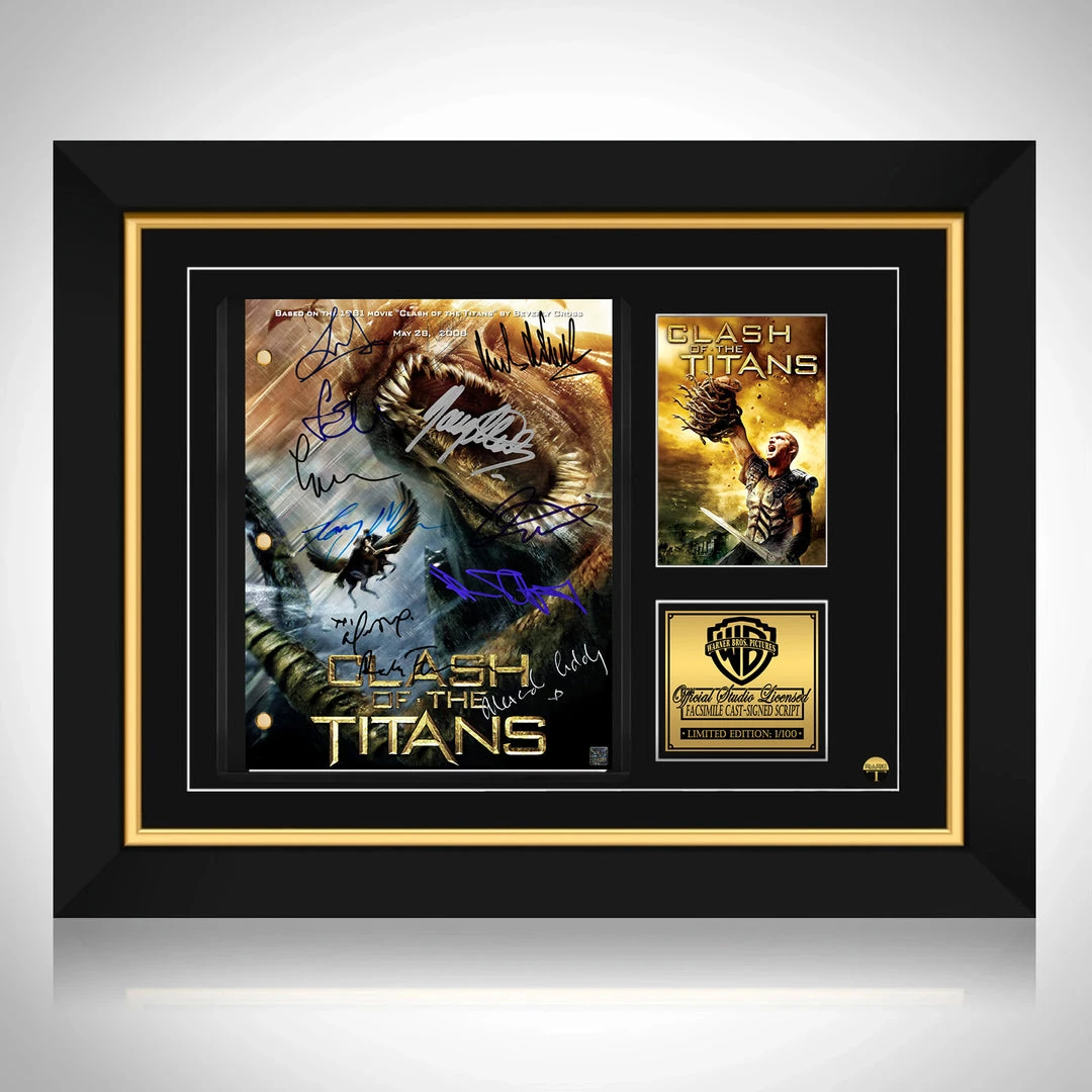 Pay homage to Clash of the Titans , with this Warner Pictures fully licensed facsimile of the official signed movie script, originally signed by actors Sam Worthington, Gemma Arterton, Mads Mikkelsen, Alexa Davalos, Ralph Fiennes, Liam Neeson, Jason Flemyng, Luke Evans, Liam Cunningham, Rory McCann, Alexander Siddig & Danny Huston , of which is strictly limited to 100 units Worldwide and has been approved and numbered accordingly.
