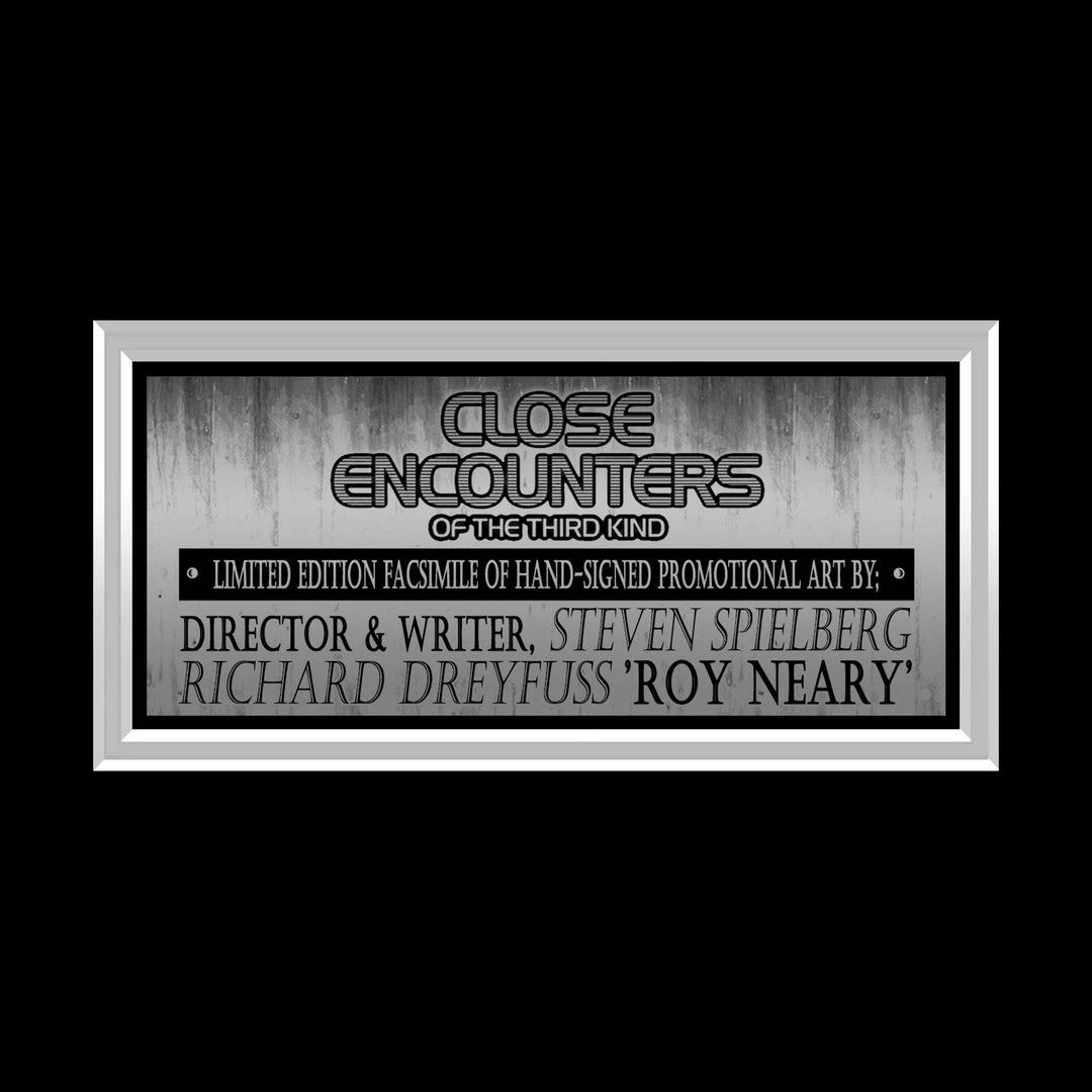 Pay homage to Close Encounters Of The Third Kind with this gallery-framed, officially licensed, limited edition facsimile of hand-signed photo, originally signed by Richard Dreyfuss & Steven Spielberg, of which is strictly limited to 100 units Worldwide, and has been approved and numbered accordingly.