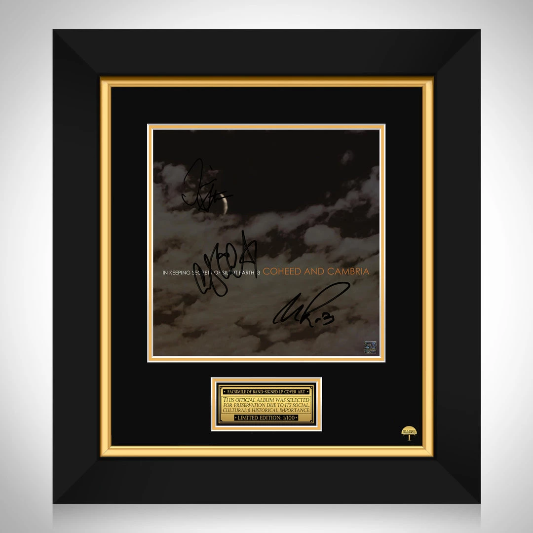 Pay homage to one of the most iconic American progressive rock band of all time, Coheed and Cambria , with this gallery-framed, officially licensed, limited edition facsimile of the Hand-Signed In keeping secrets of silent earth 3 LP Cover originally signed by Claudio Sanchez, Travis Stever & Michael Todd , of which is strictly limited to 100 units Worldwide, and has been approved and numbered accordingly.