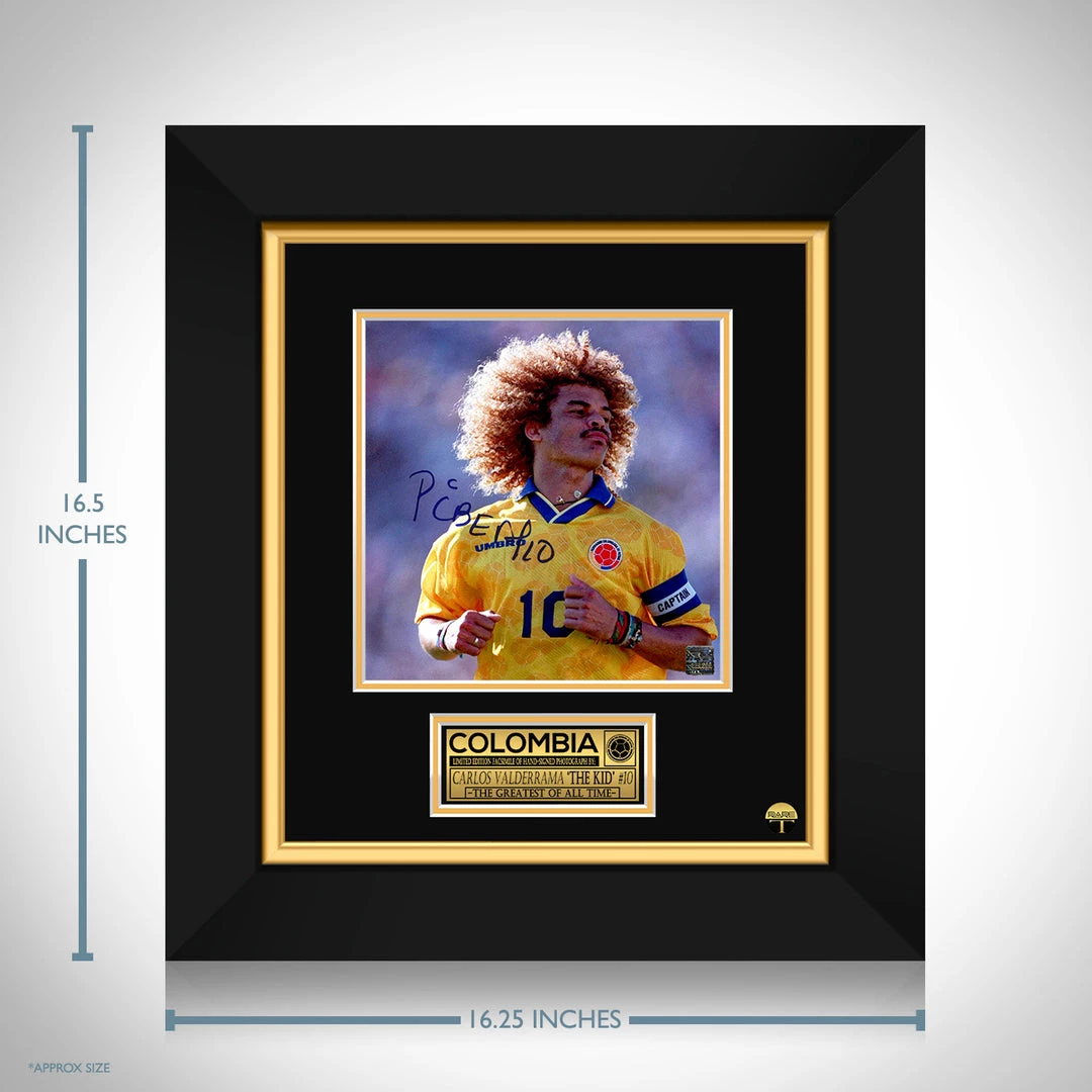 Pay homage to Carlos Valderrama, with this gallery-framed, officially licensed, limited edition facsimile of the Hand-Signed photo, originally signed by Carlos Valderrama, of which is strictly limited to 100 units Worldwide, and has been approved and numbered accordingly.