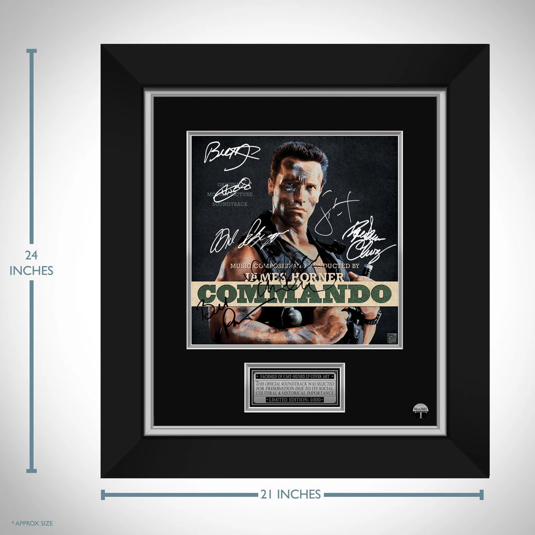 Pay homage to one of the most iconic movie of all time, Commando , with this gallery-framed, officially licensed, limited edition facsimile of the Hand-Signed Soundtrack LP Cover originally signed by Arnold Schwarzenegger, Rae Dawn Chong, Dan Hedaya, Alyssa Milano, Bill Duke, Bill Paxton & Vernon Wells , of which is strictly limited to 100 units Worldwide, and has been approved and numbered accordingly.