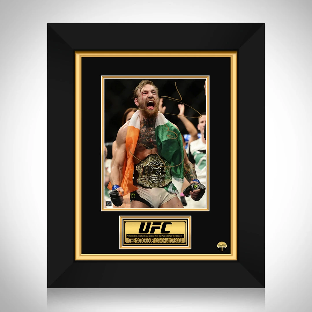 Pay homage to the former UFC Featherweight and Lightweight Champion Conor McGregor, with this gallery-framed, officially licensed, limited edition facsimile of hand-signed photo, originally signed by the legendary UFC Champion himself Conor McGregor, of which is strictly limited to 100 units Worldwide, and has been approved and numbered accordingly.
