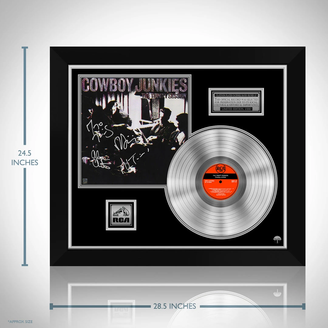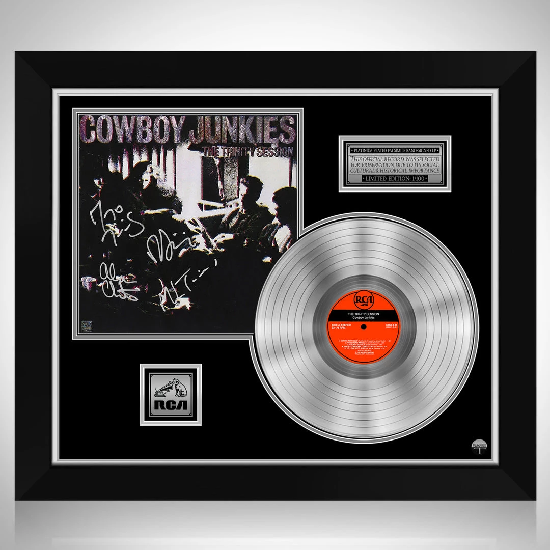 Pay homage to one of the most iconic alternative country and folk rock band of all time Cowboy Junkies , with this gallery-framed, authentic RCA Records fully licensed facsimile of the official Hand-Signed Platinum Plated LP Record and LP Cover The Trinity Session Originally signed by Cowboy Junkies , of which is strictly limited to 100 units Worldwide and has been approved and numbered accordingly.