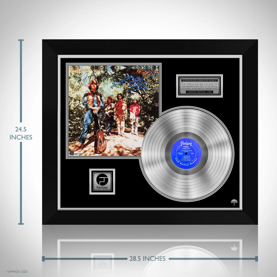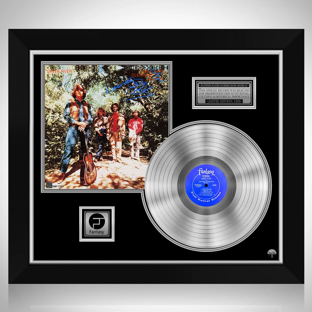 Pay homage to one of the most iconic American rock band of all time Creedence Clearwater Revival , with this gallery-framed, authentic Fantasy Records fully licensed facsimile of the official Hand-Signed Platinum Plated LP Record and LP Cover Green River Originally signed by John Fogerty, Stu Cook, Doug ‘Cosmo’ Clifford & Tom Fogerty , of which is strictly limited to 100 units Worldwide and has been approved and numbered accordingly.