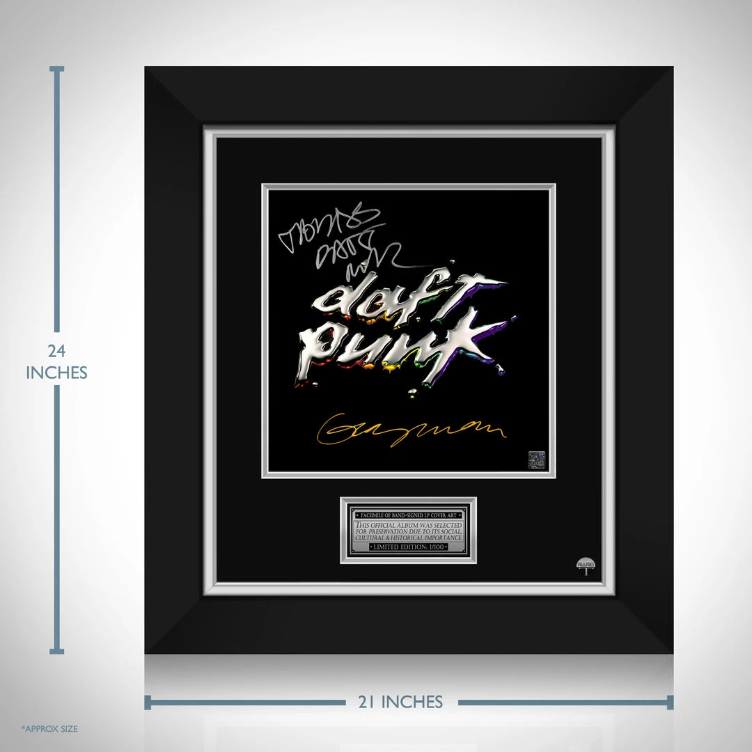 Pay homage to one of the most iconic French electronic music duo of all time, Daft Punk , with this gallery-framed, officially licensed, limited edition facsimile of the Hand-Signed Discovery LP Cover originally signed by Thomas Bangalter & Guy-Manuel de Homem-Christo , of which is strictly limited to 100 units Worldwide, and has been approved and numbered accordingly.