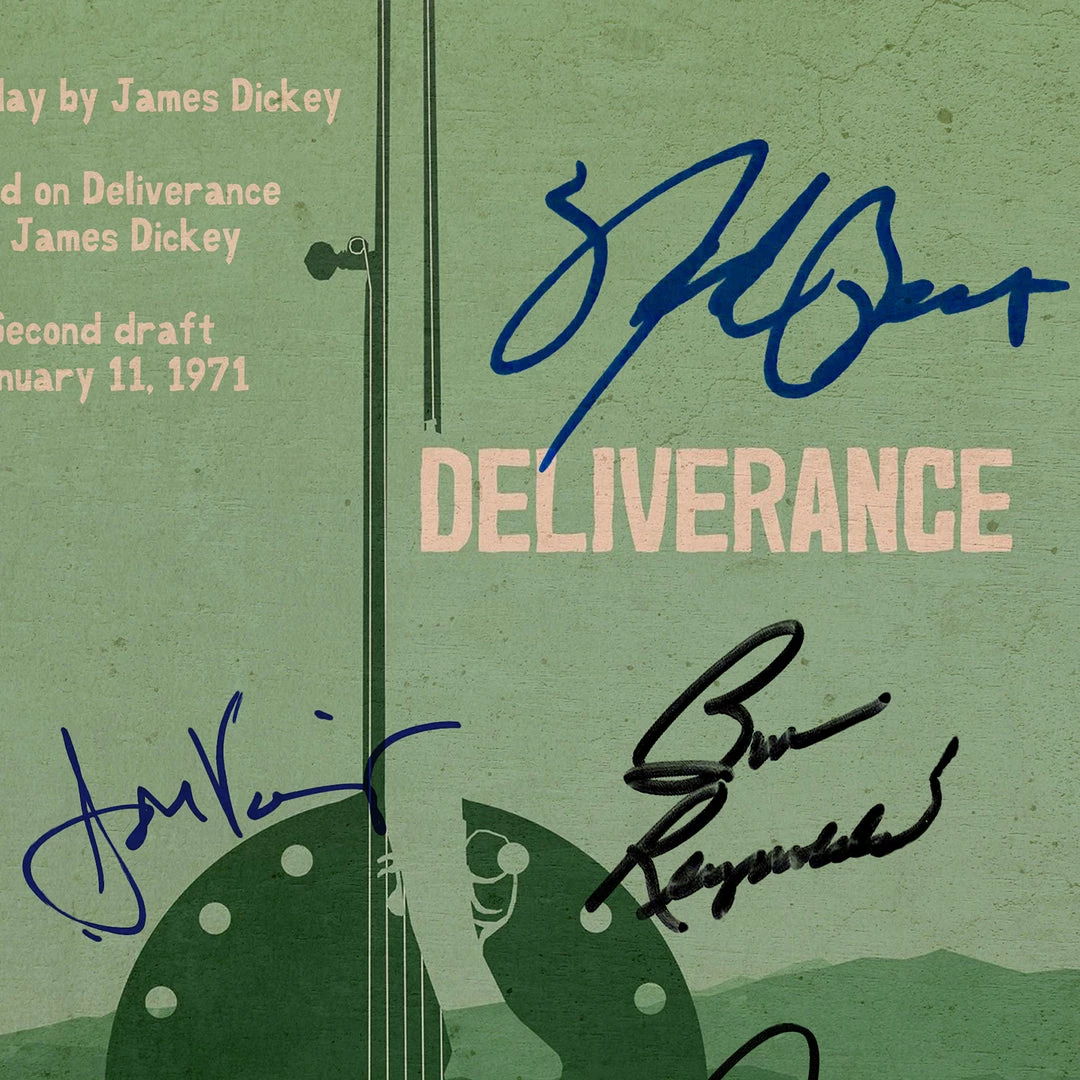 Pay homage to Deliverance , with this Warner Bros fully licensed facsimile of the official signed movie script, originally signed by actors Jon Voight, Burt Reynolds, Ned Beatty & Ronny Cox , of which is strictly limited to 100 units Worldwide and has been approved and numbered accordingly.