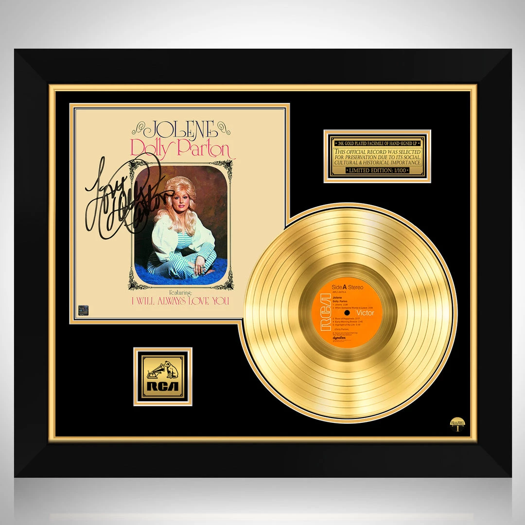 Pay homage to one of the most successful, popular and influential musical artists of all time Dolly Parton, with this gallery-framed, authentic, RCA fully licensed facsimile of hand-signed 24K Gold Plated LP Record and LP Cover Jolene , originally signed by Dolly Parton, of which is strictly limited to 100 units Worldwide, and has been approved and numbered accordingly.
