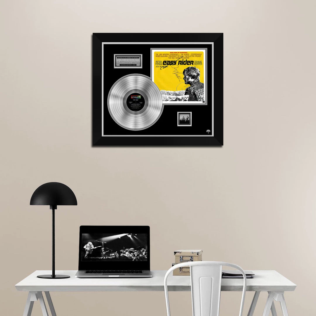 — Collectible Easy Rider Facsimile Hand-Signed Platinum Plated LP Custom Frame