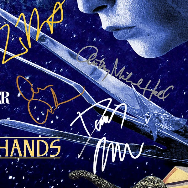 — Originally signed by Tim Burton, Johnny Depp, Dianne Wiest, Kathy Baker, Alan Arkin, Winona Ryder, Anthony Michael Hall, Vincent Price and Danny Elfman Â