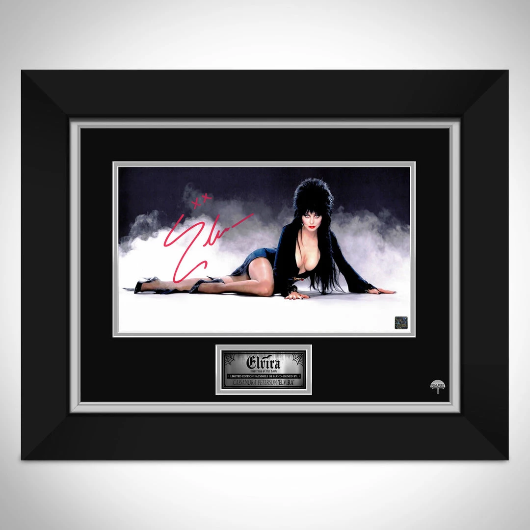 Pay homage to the Mistress of the Dark, Elivra, with this gallery-framed, officially licensed, limited edition facsimile of the Hand-Signed promo photo, originally signed by Cassandra Peterson, of which is strictly limited to 100 units Worldwide, and has been approved and numbered accordingly.
