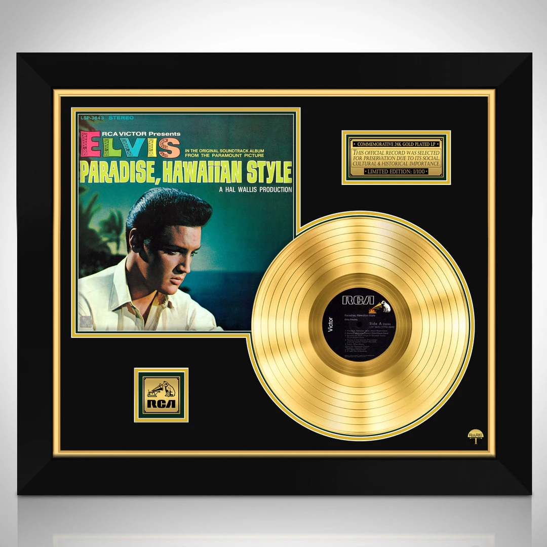 Pay homage to the King of Rock and Roll, Elvis Presley, with this fully licensed Official 24K Gold Plated LP ‘Paradise Hawaiian Style‘ issued by RCA Records and strictly limited to 100 units Worldwide and has been approved and numbered accordingly.