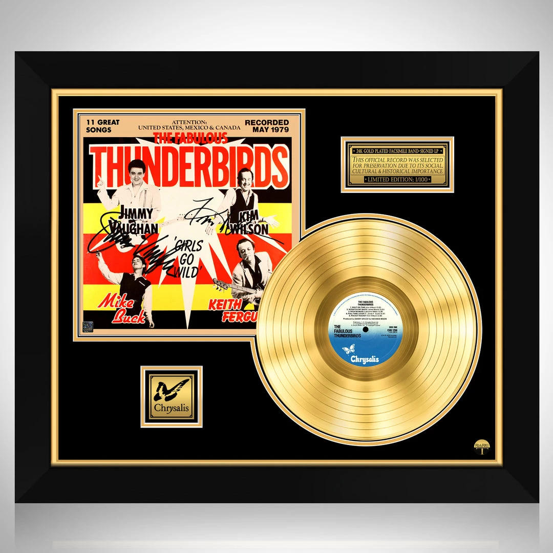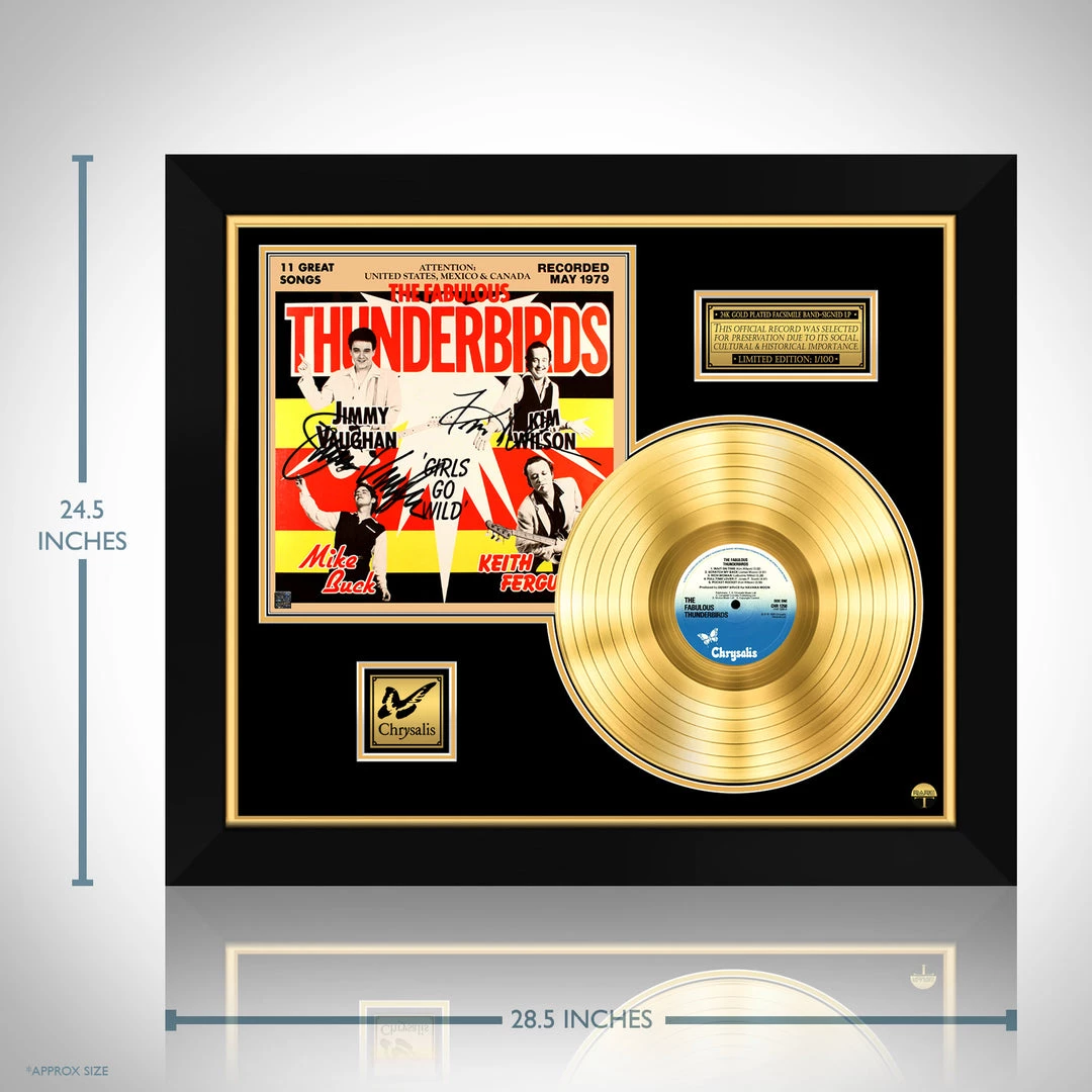 Pay homage to one of the most iconic American blues rock band of all time Fabulous Thunderbirds , with this gallery-framed, authentic Chrysalis records fully licensed facsimile of the official Hand-Signed 24K Gold LP Record and LP Cover Girls Go Wild Originally signed by Kim Wilson & Jimmie Vaughan , of which is strictly limited to 100 units Worldwide and has been approved and numbered accordingly.