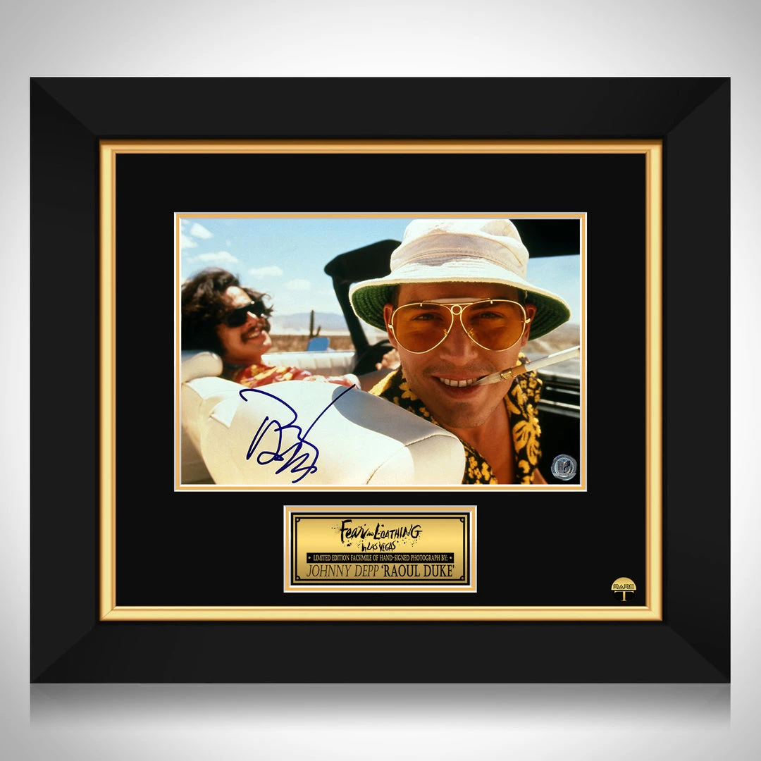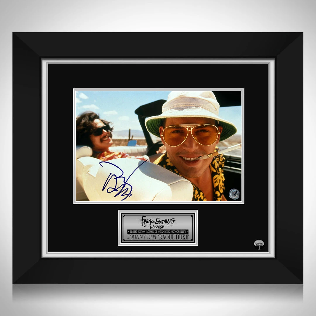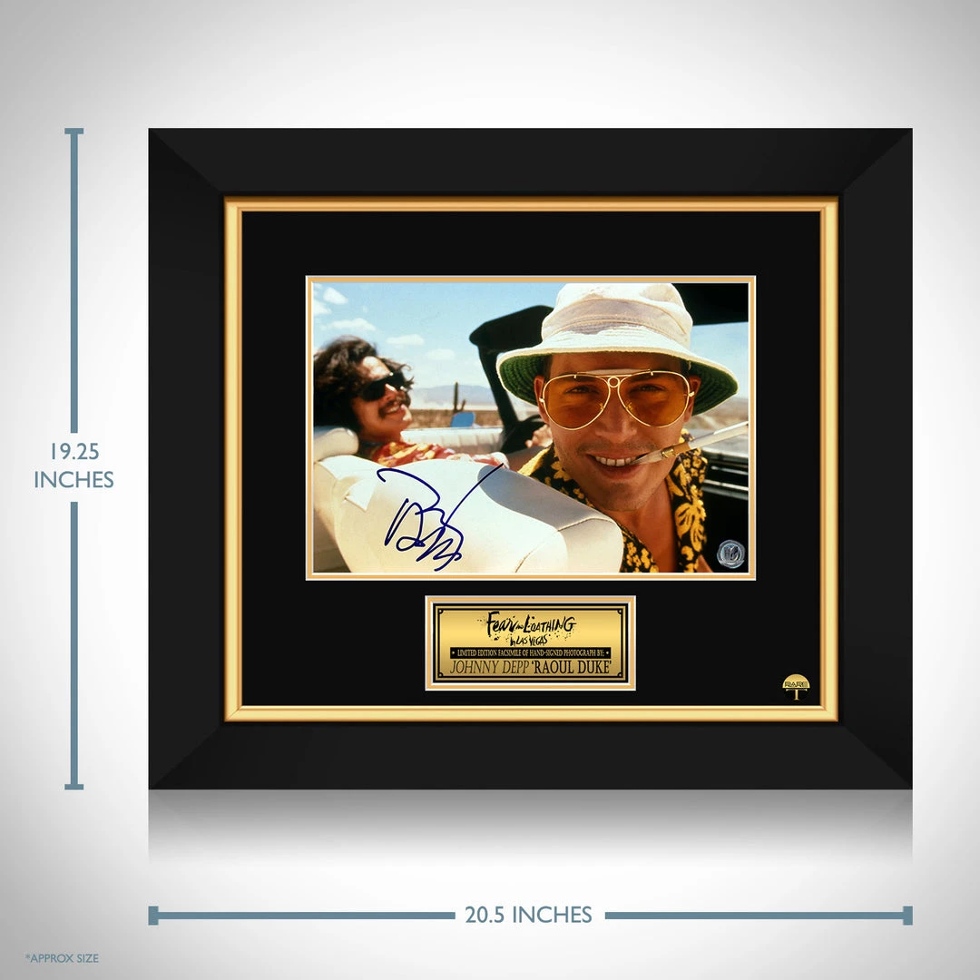 Pay homage to Fear and Loathing in Las Vegas, with this gallery-framed, officially licensed, limited edition facsimile of the Hand-Signed photo, originally signed by Johnny Depp , of which is strictly limited to 100 units Worldwide, and has been approved and numbered accordingly.