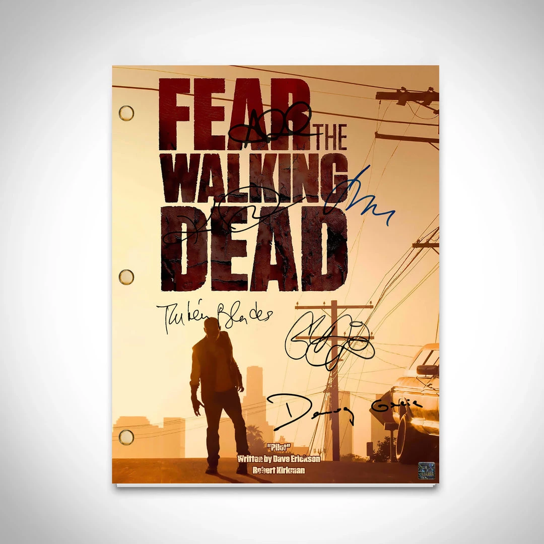 Pay homage to Fear of the Walking Dead , with this AMC fully licensed facsimile of the official signed TV Series script, originally signed by actors Alycia Debnam-Carey, Colman Domingo, Danay Garcia, Rubén Blades, Kim Dickens & Frank Dillane , of which is strictly limited to 100 units Worldwide and has been approved and numbered accordingly.