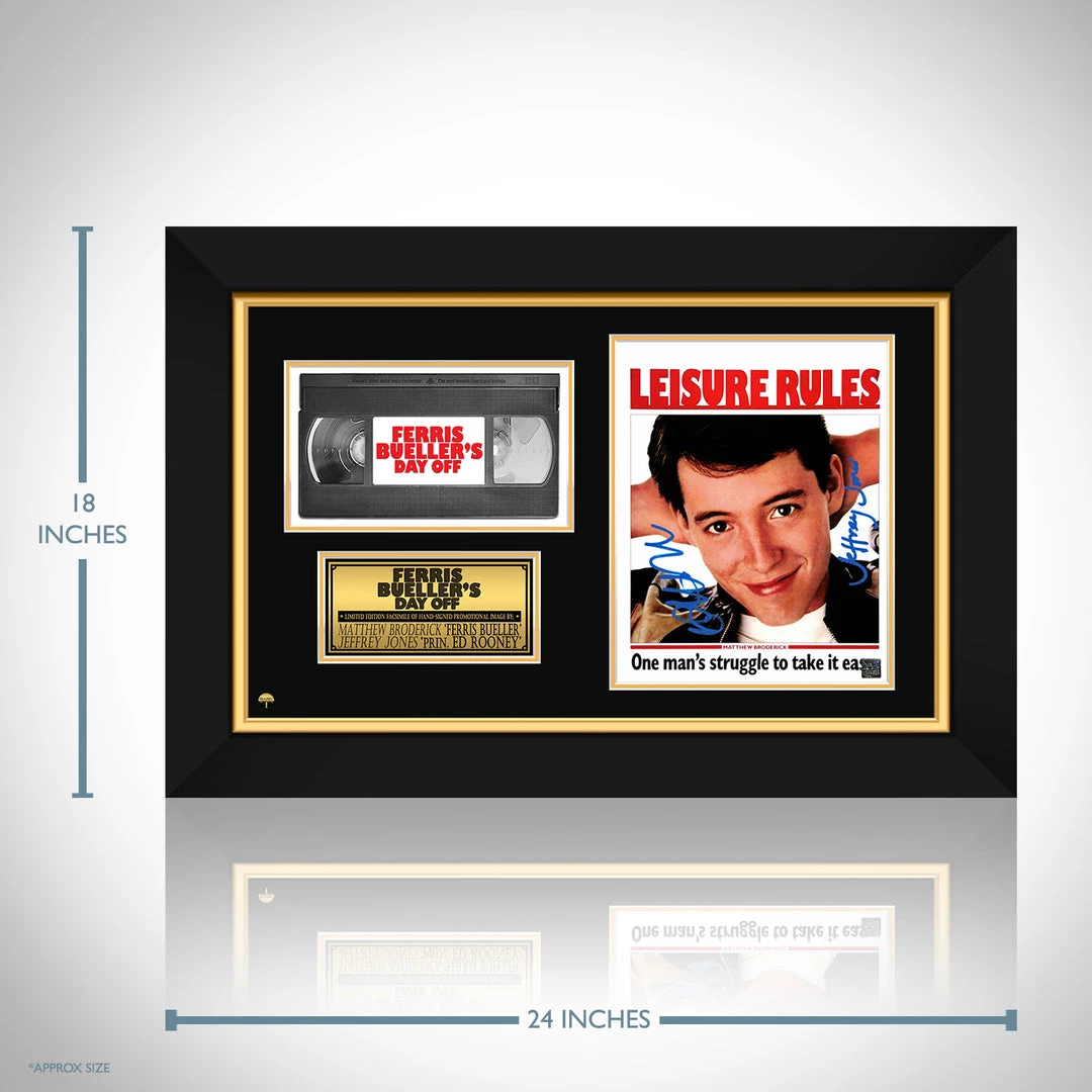 Pay homage to Ferris Bueller’s Day Off, with this gallery-framed, officially licensed, limited edition facsimile of hand-signed movie photo & VHS , originally signed by Matthew Broderick & Jeffrey Jones, of which is strictly limited to 100 units Worldwide, and has been approved and numbered accordingly.