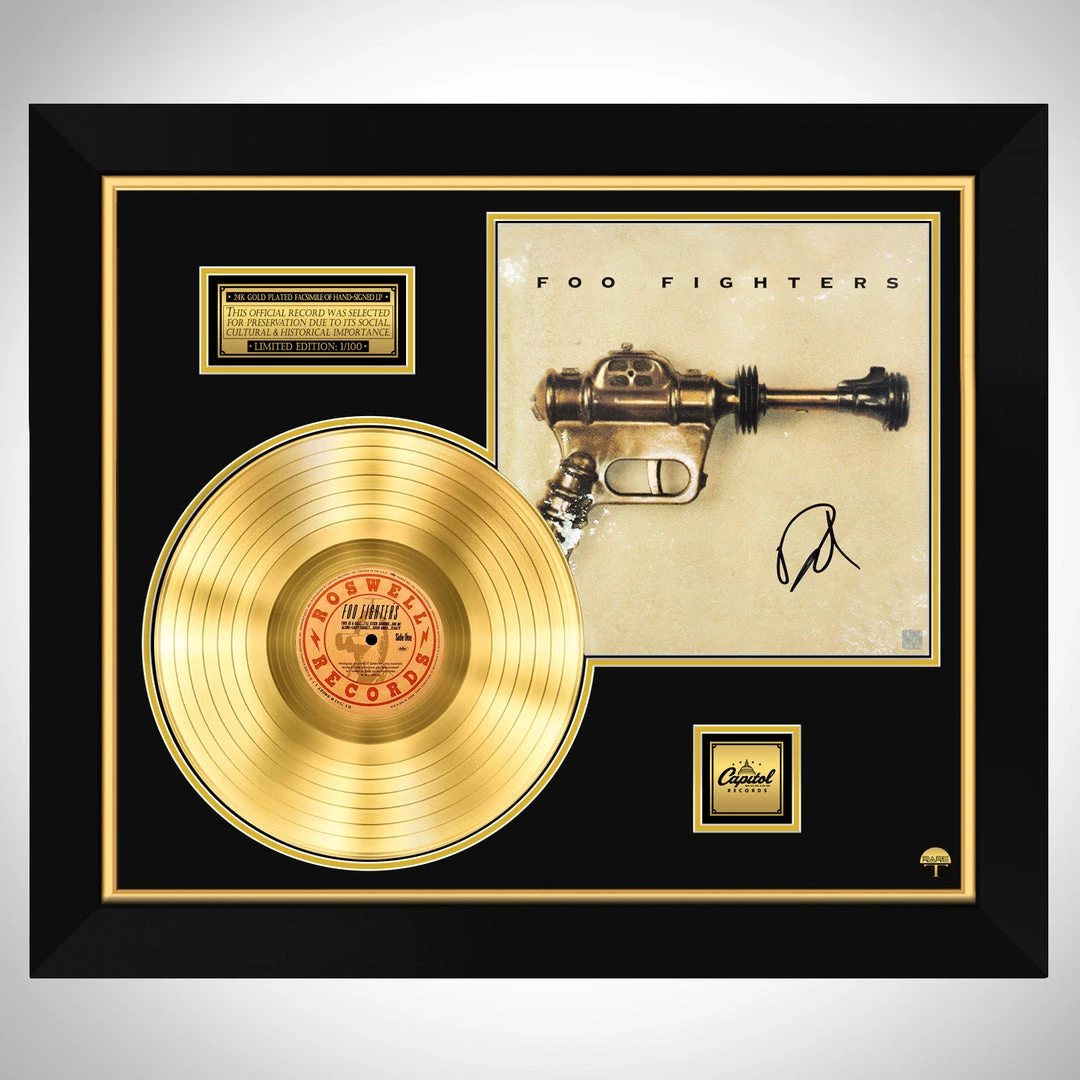 ฦ?? Collectible Foo Fighters facsimile of hand-signed 24k Gold Plated LP Custom Frame