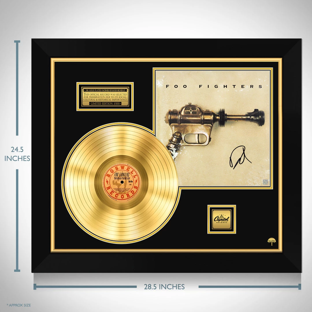 Pay homage to one of the best rock bands of all time, The Foo Fighters, with this gallery-framed, authentic, Capitol Records fully licensed facsimile of the official Hand-Signed 24k Gold Plated LP Record and LP Cover Foo Fighters, originally signed by musician, singer-songwriter David Grohl, of which is strictly limited to 100 units Worldwide and has been approved and numbered accordingly.