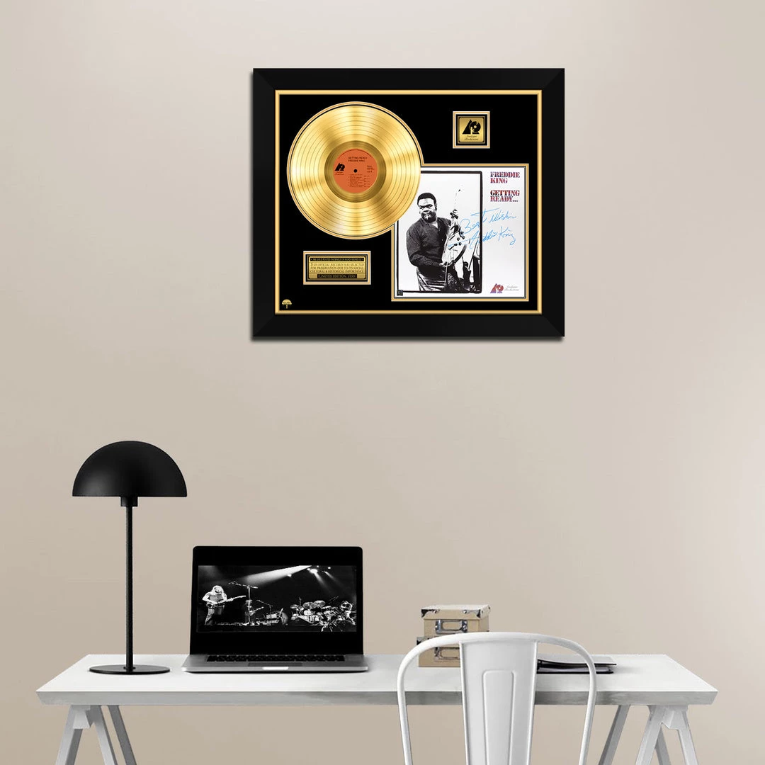 Pay homage to one of the most iconic American blues guitarist, singer and songwriter of all time Freddie King , with this gallery-framed, authentic Analogue Records fully licensed facsimile of the official Hand-Signed 24K Gold LP Record and LP Cover Getting Ready Originally signed by Freddie King , of which is strictly limited to 100 units Worldwide and has been approved and numbered accordingly.