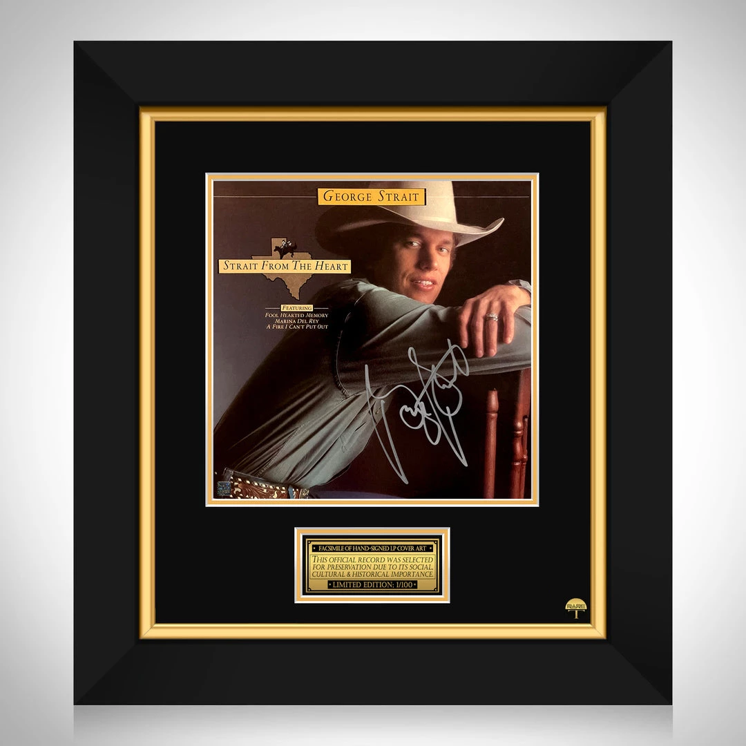 Pay homage to one of the most iconic American country music singer, songwriter of all time, George Strait , with this gallery-framed, officially licensed, limited edition facsimile of the Hand-Signed Strait from the Heart LP Cover originally signed by George Strait , of which is strictly limited to 100 units Worldwide, and has been approved and numbered accordingly.