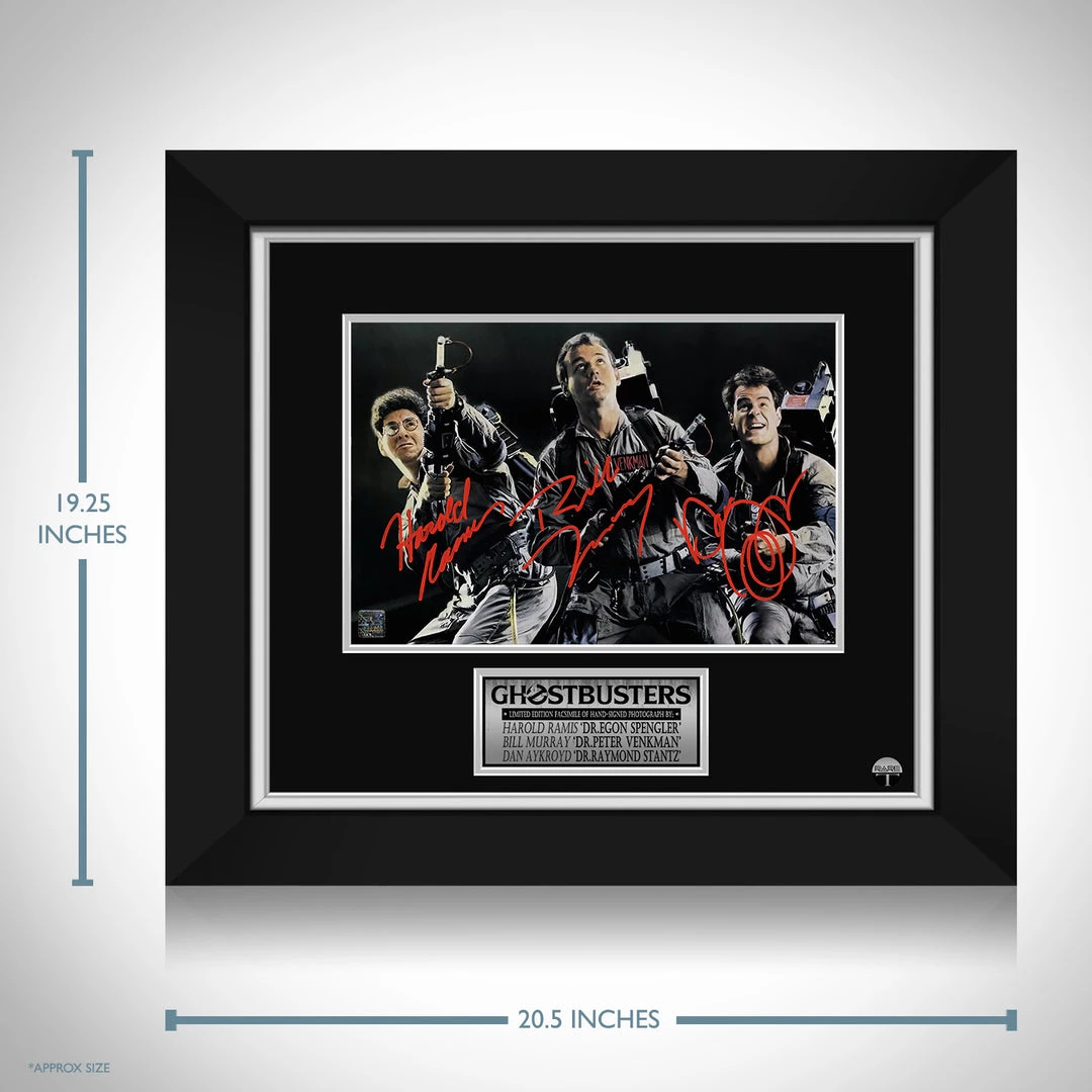 Pay homage to The Ghostbusters, with this gallery-framed, officially licensed, limited edition facsimile of hand-signed promo photo, originally signed by Dan Aykroyd, Bill Murray & Harrold Ramis, of which is strictly limited to 100 units Worldwide, and has been approved and numbered accordingly.