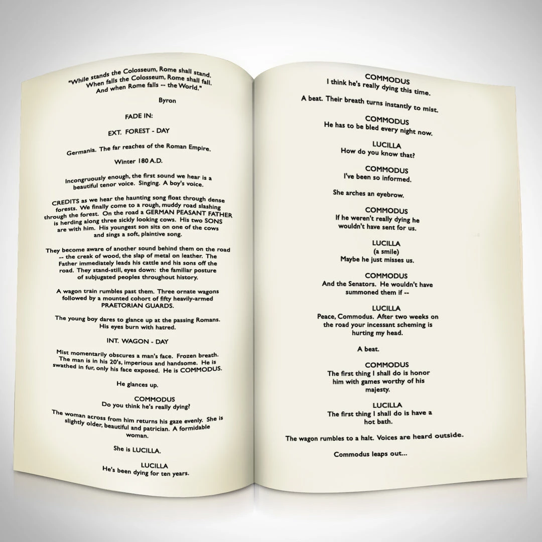 Pay homage to Gladiator , with this Dreamworks Pictures  fully licensed facsimile of the official signed movie script, originally signed by actors Russell Crowe, Joaquin Phoenix, Ridley Scott and Connie Nielsen , of which is strictly limited to 100 units Worldwide and has been approved and numbered accordingly.