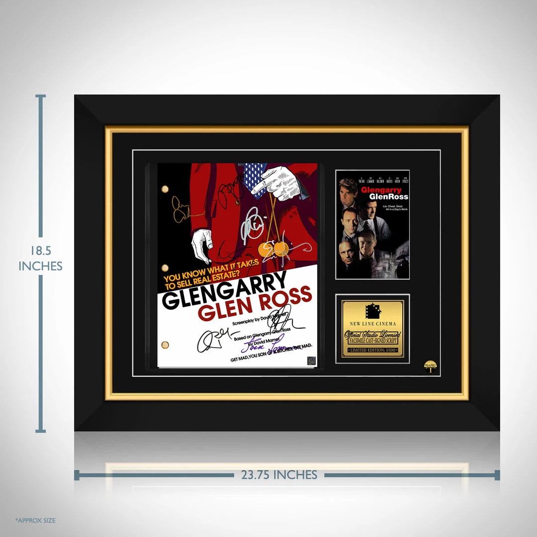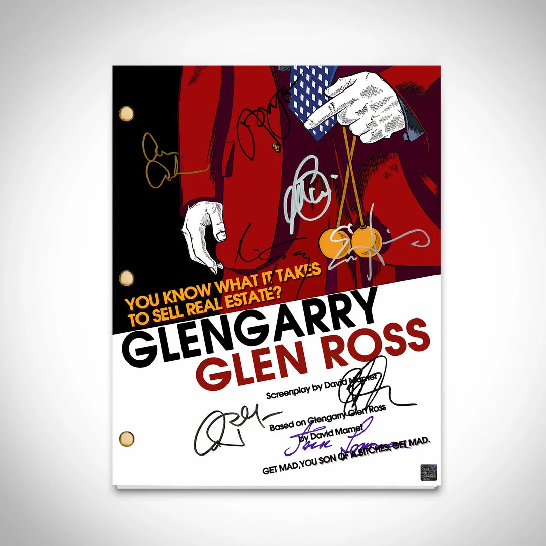 Pay homage to Glengarry Glen Ross , with this New Line Cinema fully licensed facsimile of the official signed movie script, originally signed by actors Al Pacino, Jack Lemmon, Alec Baldwin, Alan Arkin, Ed Harris, Kevin Spacey, Jonathan Pryce & Bruce Altman , of which is strictly limited to 100 units Worldwide and has been approved and numbered accordingly.