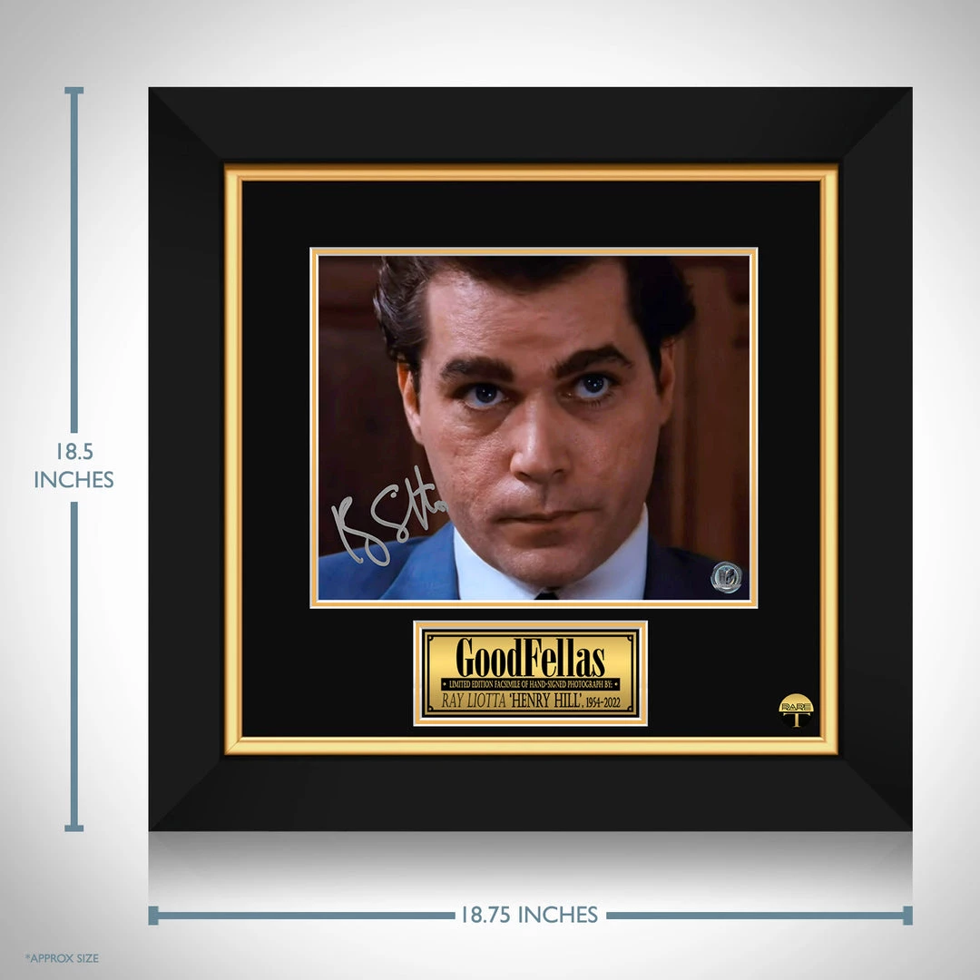 Pay homage to Goodfellas , with this gallery-framed, officially licensed, limited edition facsimile of the Hand-Signed photo, originally signed by Ray Liotta, of which is strictly limited to 100 units Worldwide, and has been approved and numbered accordingly.