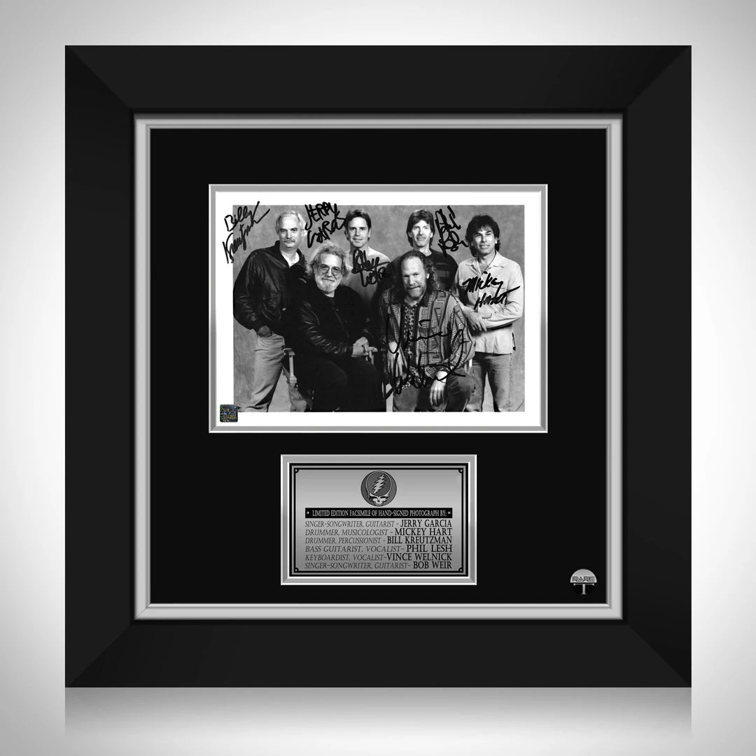 Pay homage to The Grateful Dead with this gallery-framed, officially licensed, limited edition facsimile of hand-signed promo photo, originally signed by Jerry Garcia, Mickey Hart, Bill Kreutzman, Phil Lesh, Vince Welnick & Bob Weir, of which is strictly limited to 100 units Worldwide, and has been approved and numbered accordingly.