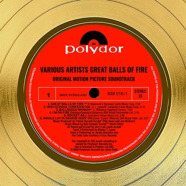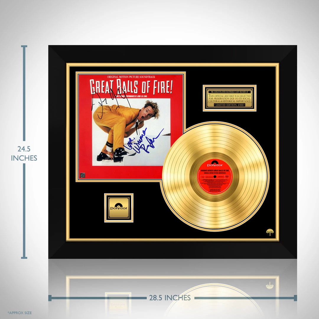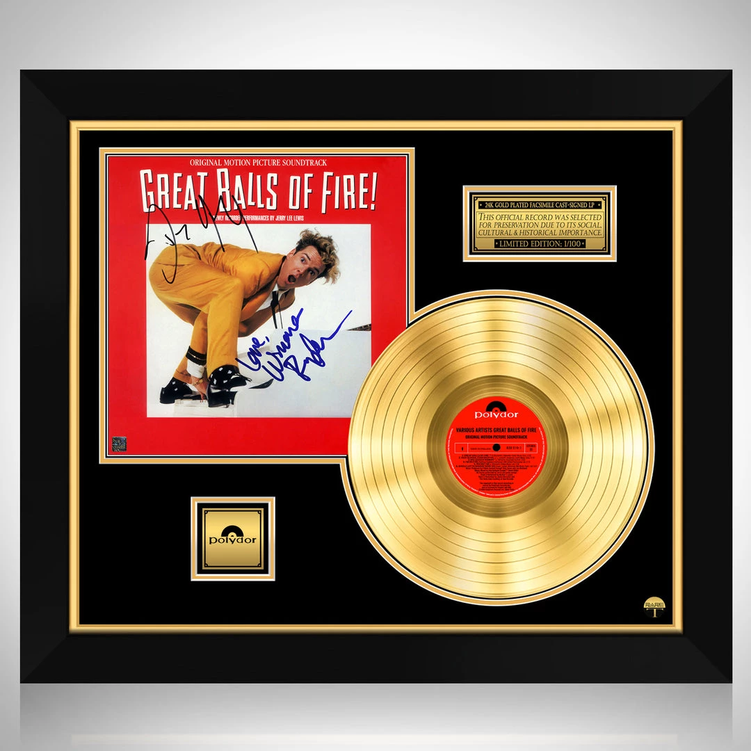 Pay homage to one of the most iconic movie of all time Great Balls of Fire , with this gallery-framed, authentic Polydor Records fully licensed facsimile of the official Hand-Signed 24K Gold LP Record and LP Cover soundtrack Originally signed by Dennis Quaid & Winona Ryder , of which is strictly limited to 100 units Worldwide and has been approved and numbered accordingly.