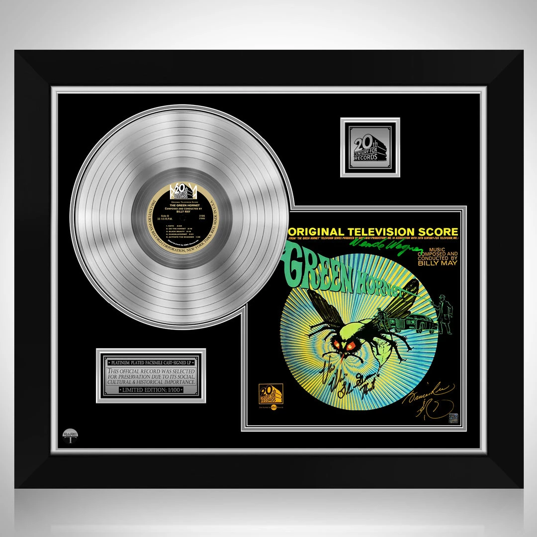 Pay homage to one of the most iconic TV Show of all time Green hornet , with this gallery-framed, authentic 20th Century Records fully licensed facsimile of the official Hand-Signed Platinum Plated LP Record and LP Cover Soundtrack Originally signed by Van Williams, Bruce Lee & Wende Wagner , of which is strictly limited to 100 units Worldwide and has been approved and numbered accordingly.