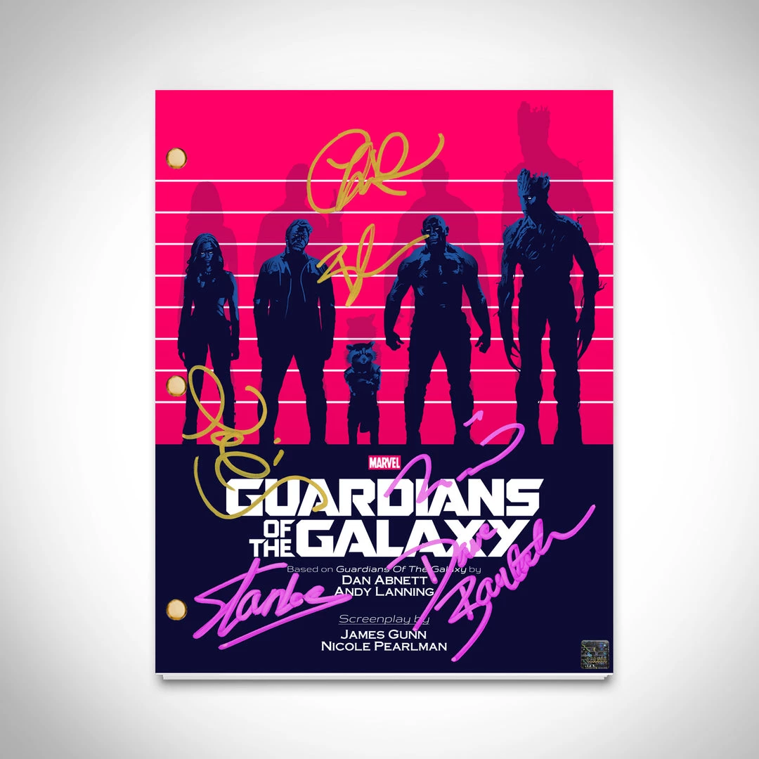 Pay homage to Guardians of the Galaxy , with this Marvel Studios  fully licensed facsimile of the official signed movie script, originally signed by actors Zoe Saldana, Chris Pratt, Bradley Cooper, Dave Bautista, Vin Diesel and Stan Lee , of which is strictly limited to 100 units Worldwide and has been approved and numbered accordingly.