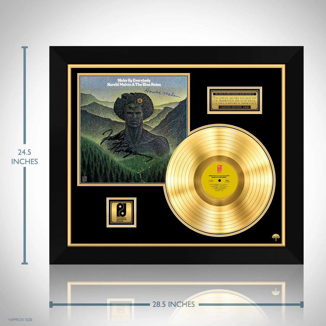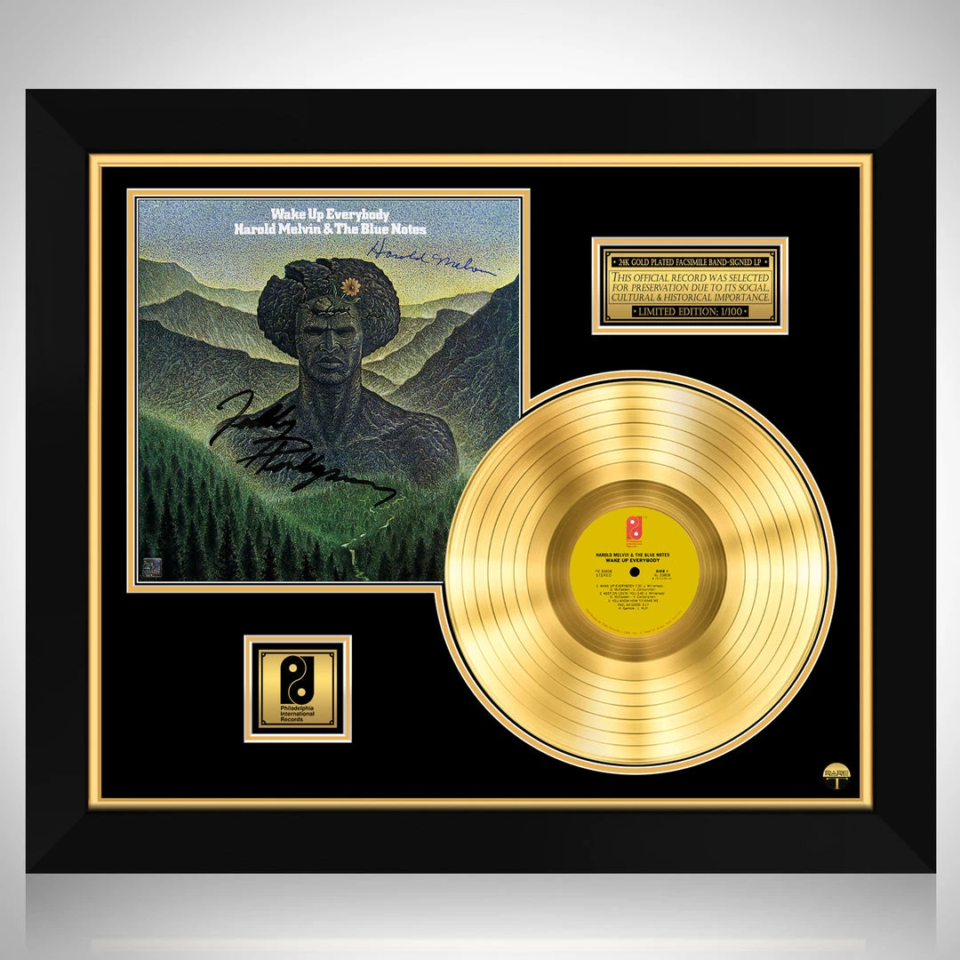 Pay homage to one of the most iconic American soul and R&B vocal group of all time Harold Melvin and the Bluenotes , with this gallery-framed, authentic Philadelphia International Records fully licensed facsimile of the official Hand-Signed 24K Gold LP Record and LP Cover Wake up Everybody Originally signed by Harold Melvin & Teddy Pendergrass , of which is strictly limited to 100 units Worldwide and has been approved and numbered accordingly.