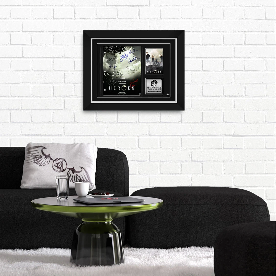 — Collector Grade Proprietary Exclusive VELVET TOUCH water/scratch resistant cover. — Collectible Facsimile of Original Hand-Signed Heroes TV Series Script Custom Frame.