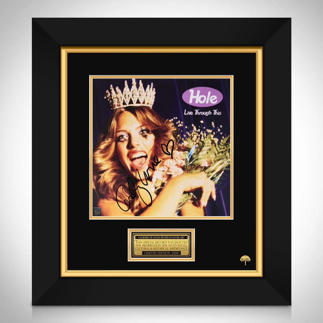 Pay homage to one of the most iconic band of all time, Hole , with this gallery-framed, officially licensed, limited edition facsimile of the Hand-Signed Live Through This LP Cover originally signed by Courtney Love , of which is strictly limited to 100 units Worldwide, and has been approved and numbered accordingly.