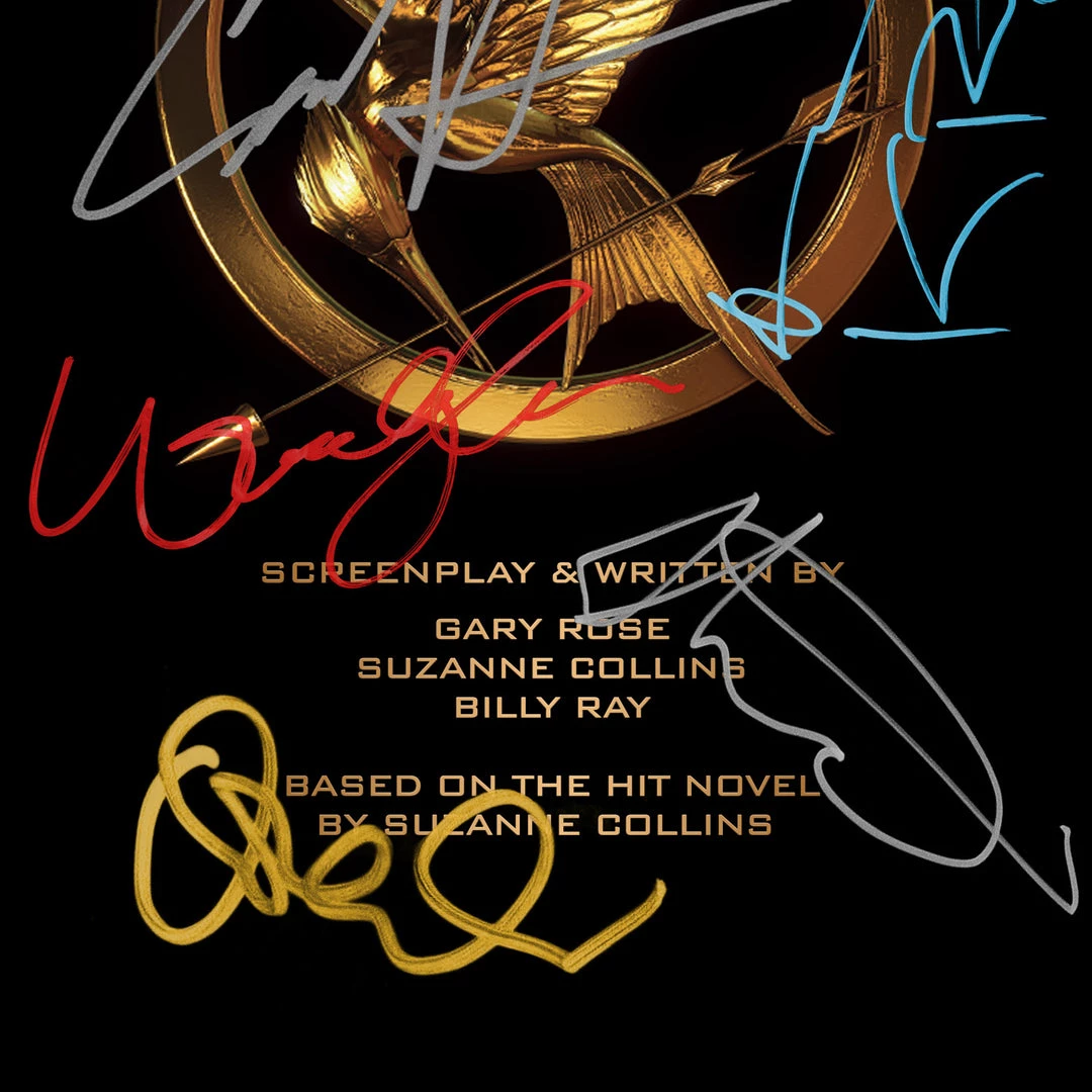 Pay homage to Hunger Games , with this Lionsgate Film fully licensed facsimile of the official signed movie script, originally signed by actors Stanley Tucci, Wes Bentley, Jennifer Lawrence, Liam Hemsworth, Woody Harrelson, Lenny Kravitz & Donald Sutherland, , of which is strictly limited to 100 units Worldwide and has been approved and numbered accordingly.