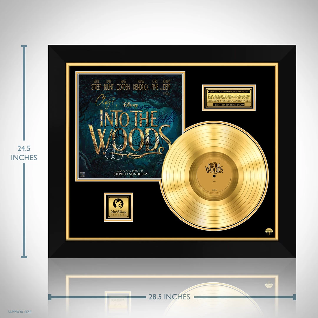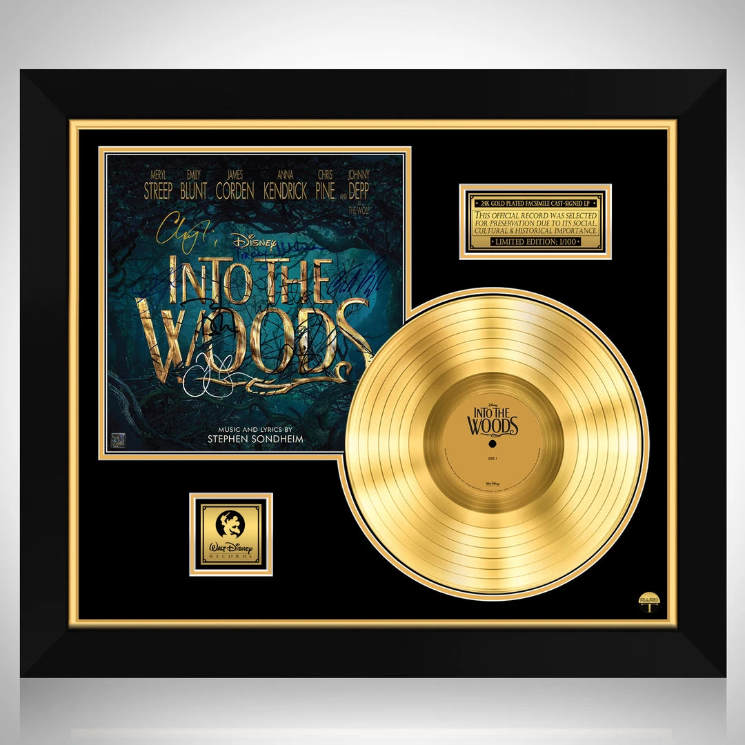 Pay homage to one of the most iconic movie of all time Into the Woods , with this gallery-framed, authentic Walt Disney Records fully licensed facsimile of the official Hand-Signed 24K Gold LP Record and LP Cover Original Motion Picture Soundtrack Originally signed by Meryl Streep, Emily Blunt, James Corden, Anna Kendrick, Chris Pine, Tracey Ullman, Christine Baranski & Johnny Depp , of which is strictly limited to 100 units Worldwide and has been approved and numbered accordingly.