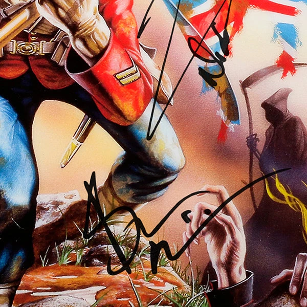 Pay homage to one of the most iconic English heavy metal band of all time Iron Maiden , with this gallery-framed, authentic EMI Records fully licensed facsimile of the official Hand-Signed 24K Gold LP Record and LP Cover The Trooper Originally signed by Bruce Dickinson, Dave Murray, Adrian Smith, Steve Harris & Nicko McBrain , of which is strictly limited to 100 units Worldwide and has been approved and numbered accordingly.