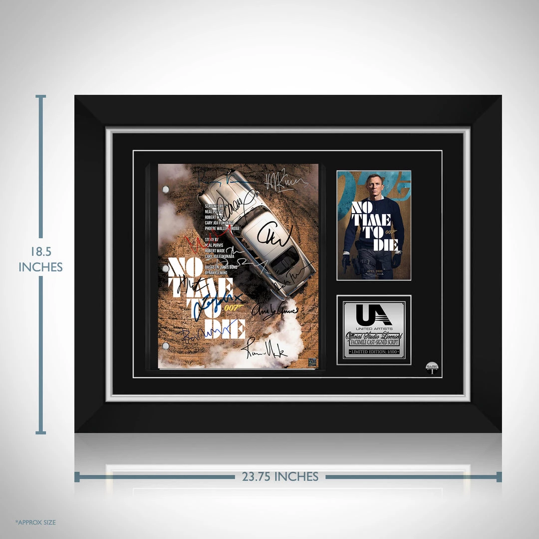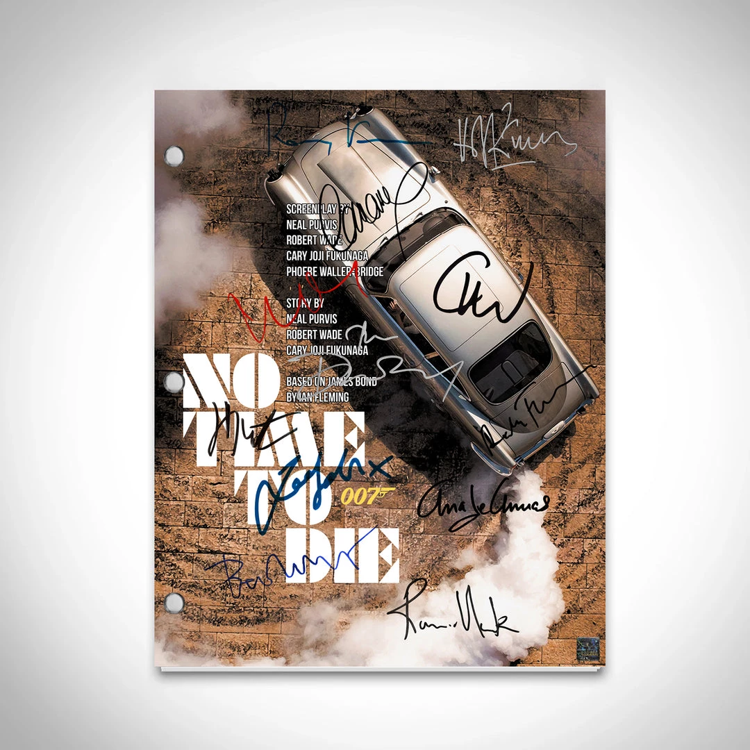 Pay homage to James Bond No Time To Die , with this United Artist fully licensed facsimile of the official signed movie transcript, originally signed by actors Daniel Craig, Rami Malek, Léa Seydoux, Lashana Lynch, Ben Whishaw, Naomie Harris, Jeffrey Wright, Christoph Waltz, Ralph Fiennes, Hans Zimmer, Rory Kinnear & Ana de Armas , of which is strictly limited to 100 units Worldwide and has been approved and numbered accordingly.