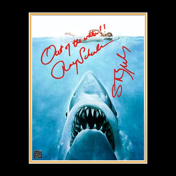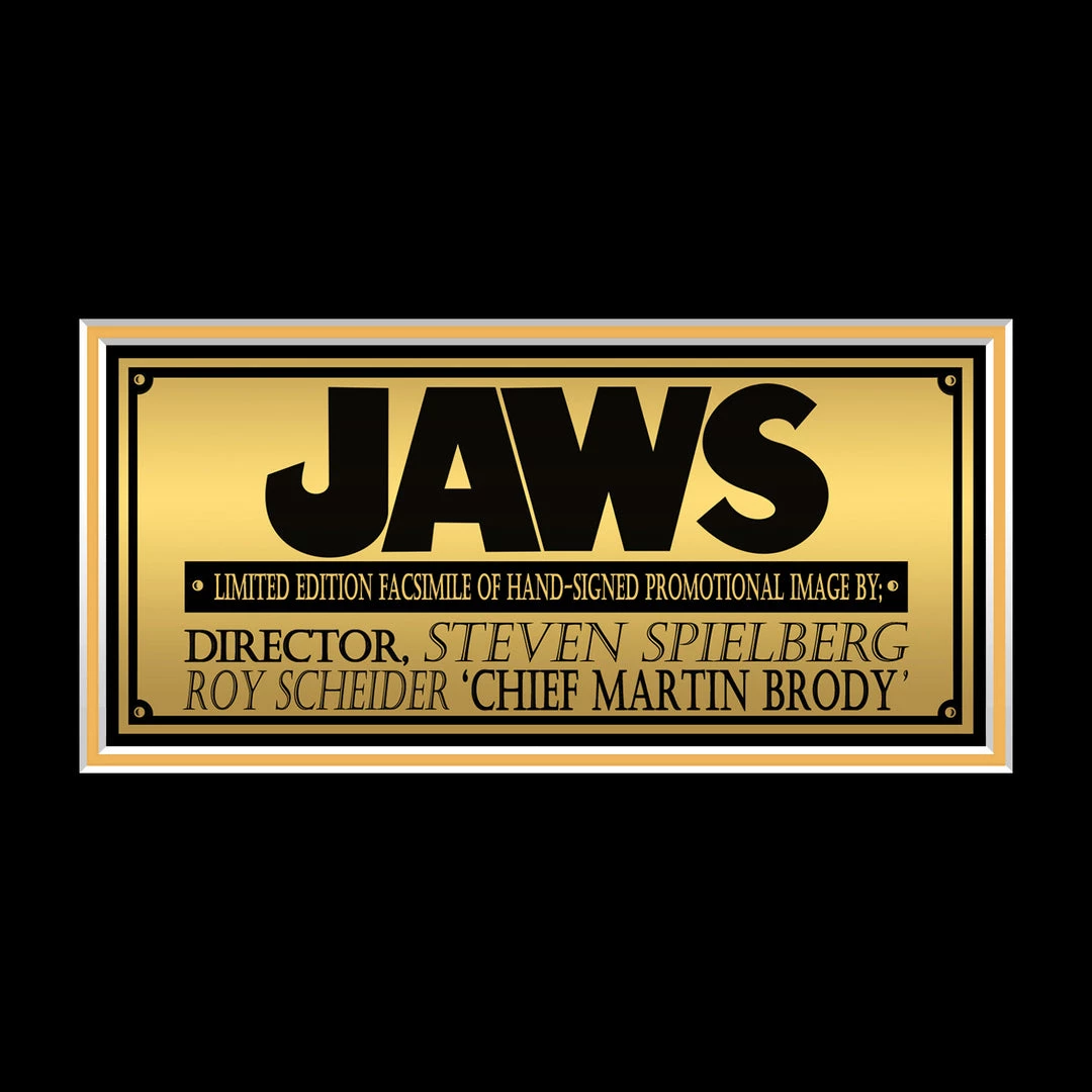 Pay homage to Jaws , with this gallery-framed, officially licensed, limited edition facsimile of hand-signed movie photo & VHS , originally signed by Steven Spielberg & Roy Scheider, of which is strictly limited to 100 units Worldwide, and has been approved and numbered accordingly.