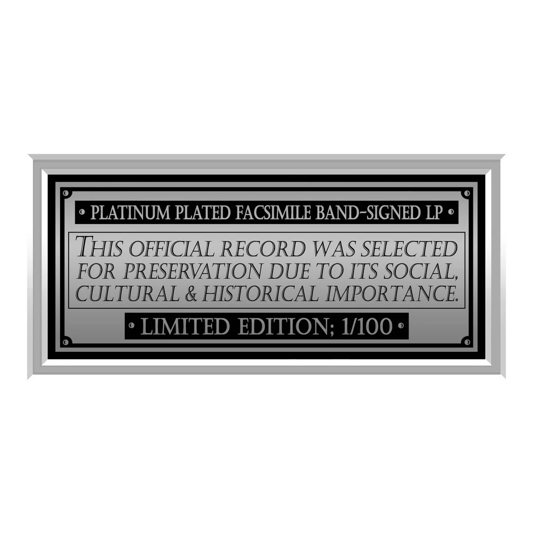 The Platinum Plated LP and album cover facsimile are both professionally mounted in the highest quality triple matted wood shadow box frame with metallic fillet trim and finished with protective glass to keep it looking pristine. The customized descriptive metallic plaque, in addition to the detailed finishing and openings, add to the elegant and sophisticated gallery quality look.