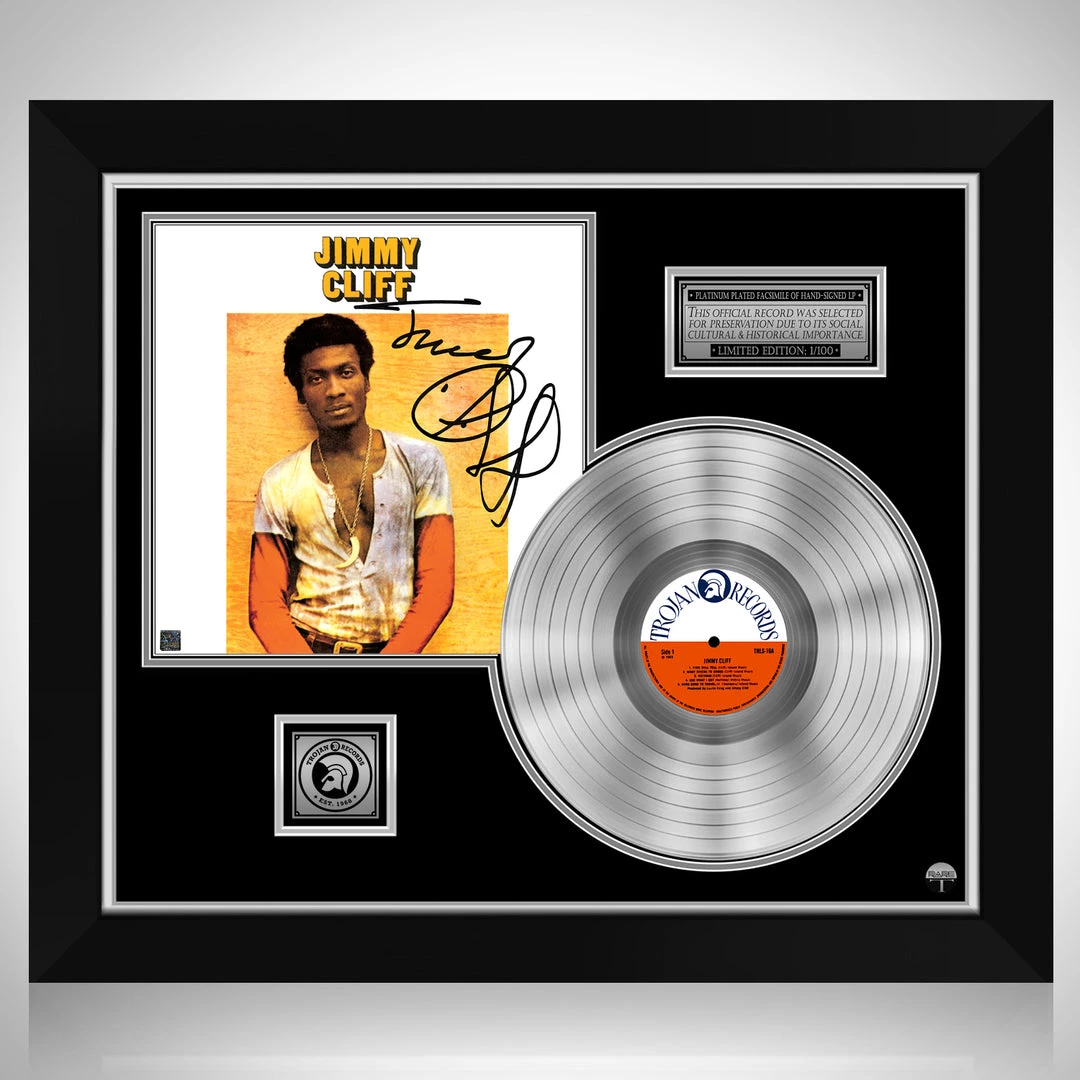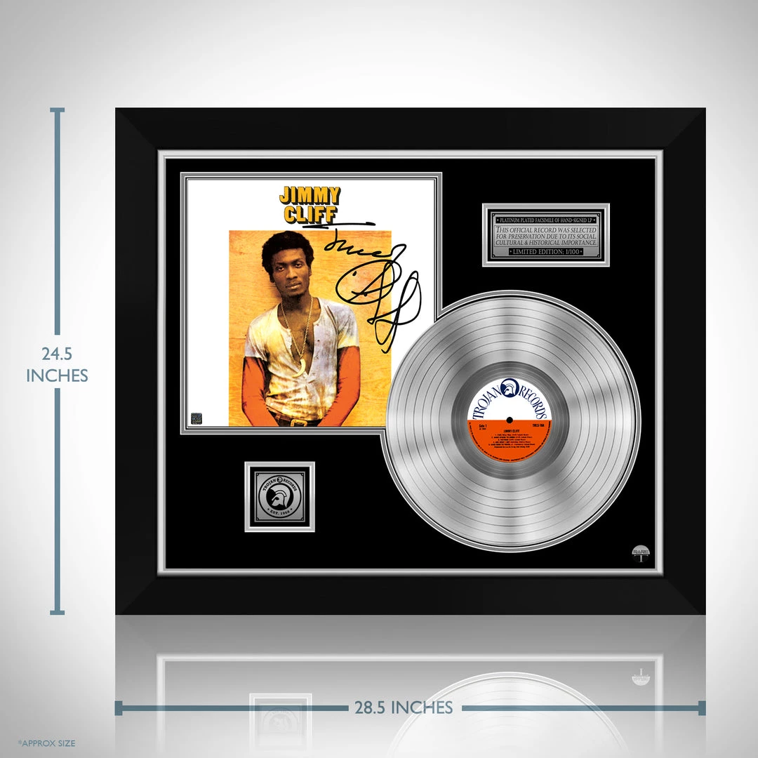 Pay homage to one of the most iconic Jamaican ska, rocksteady, reggae and soul musician, multi-instrumentalist, singer of all time Jimmy Cliff , with this gallery-framed, authentic Island Records fully licensed facsimile of the official Hand-Signed Platinum Plated LP Record and LP Cover Self-titled Originally signed by Jimmy Cliff , of which is strictly limited to 100 units Worldwide and has been approved and numbered accordingly.