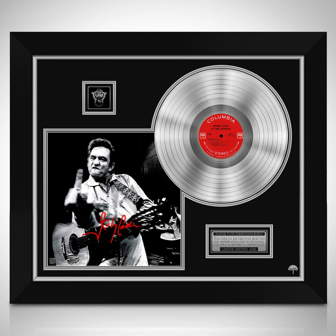 Pay homage to one of the best selling and influential legends of all time, Johnny Cash, with this gallery-framed, authentic, Columbia Records fully licensed facsimile of the official Hand-Signed Platinum Plated LP Record and LP Cover At San Quentin, originally signed by Johnny Cash, of which is strictly limited to 100 units Worldwide and has been approved and numbered accordingly.