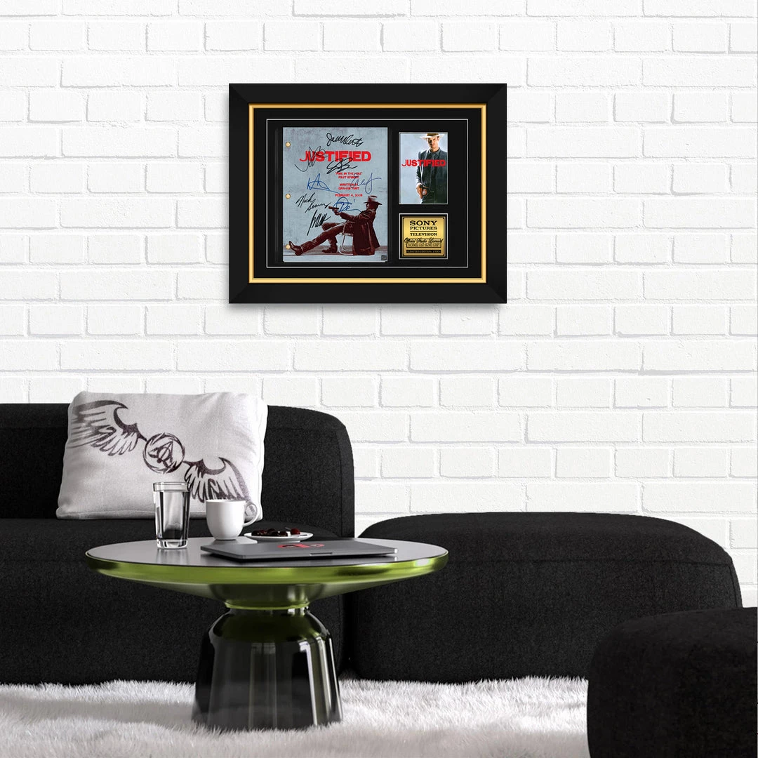 — Collector Grade Proprietary Exclusive VELVET TOUCH water/scratch resistant cover. — Collectible Facsimile of Original Hand-Signed Justified TV Series Script Custom Frame.