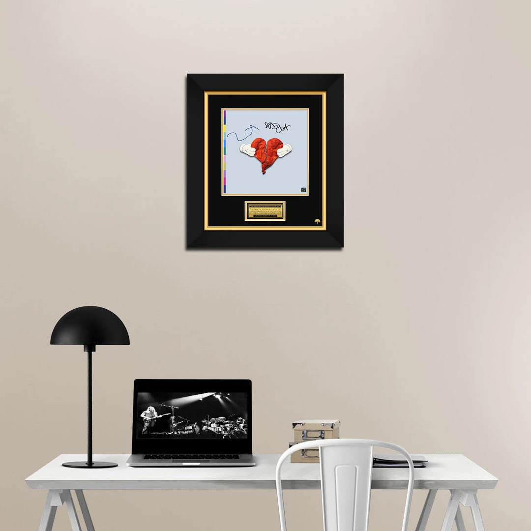 Pay homage to one of the most iconic American rapper, record producer of all time, Kanye West , with this gallery-framed, officially licensed, limited edition facsimile of the Hand-Signed 808s & Heartbreak LP Cover originally signed by Kanye West & Kid Cudi , of which is strictly limited to 100 units Worldwide, and has been approved and numbered accordingly.