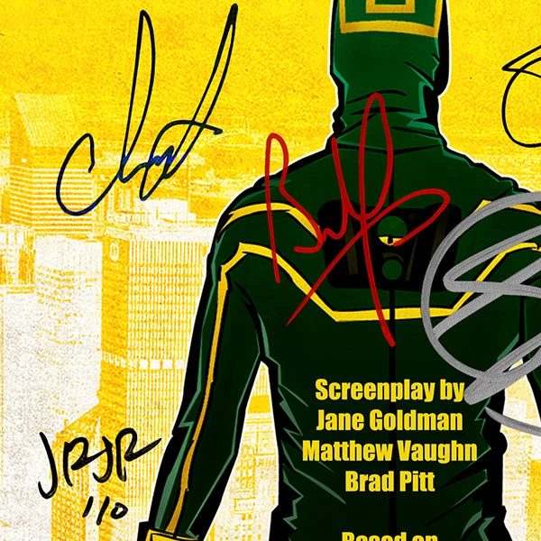 Pay homage to Kick-Ass , with this Universal Pictures fully licensed facsimile of the official signed movie script, originally signed by actors Aaron Taylor-Johnson, Christopher Mintz-Plasse, Mark Strong, Chloë Grace Moretz, Nicolas Cage & John Romita Jr. , of which is strictly limited to 100 units Worldwide and has been approved and numbered accordingly.