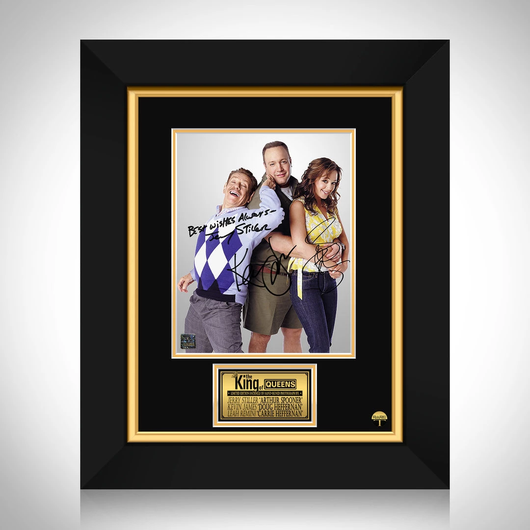 Pay homage to Kings of Queens Cast, with this gallery-framed, officially licensed, limited edition facsimile of the Hand-Signed photo, originally signed by Jerry Stiller, Kevin James and Leah Remini, of which is strictly limited to 100 units Worldwide, and has been approved and numbered accordingly.