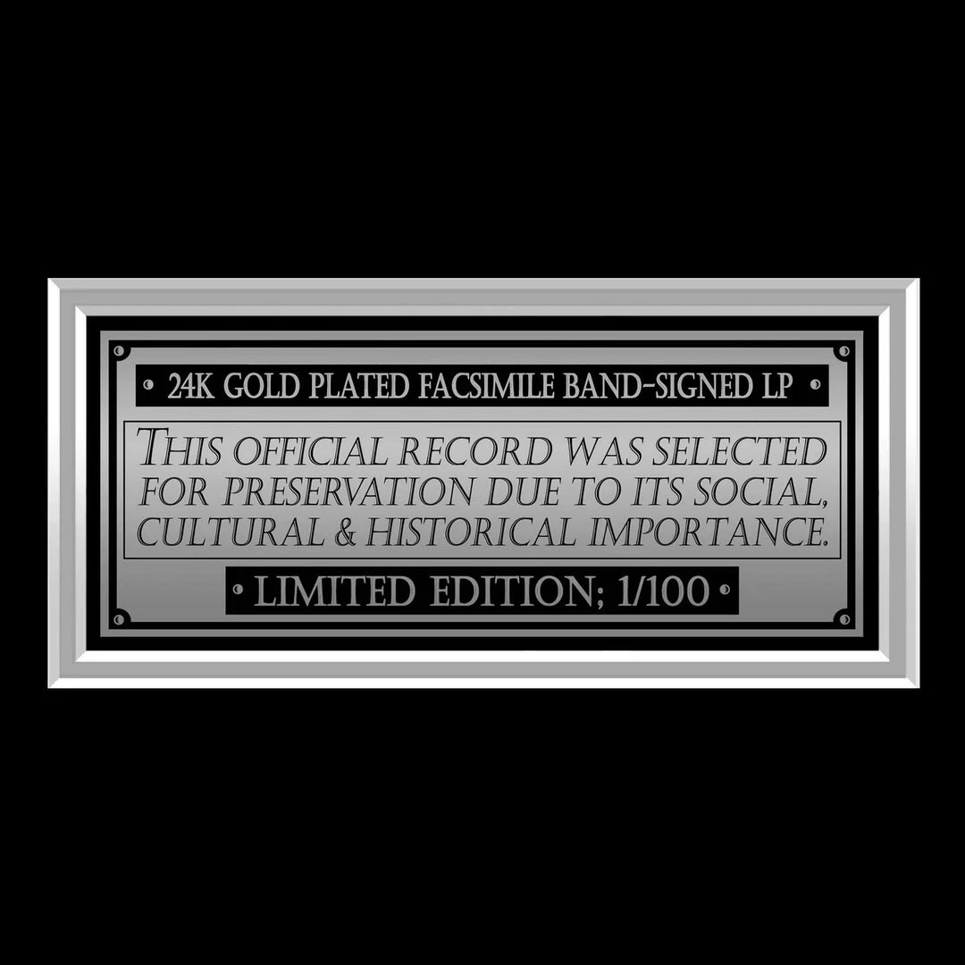 The Platinum Plated LP and album cover facsimile are both professionally mounted in the highest quality triple matted wood shadow box frame with metallic fillet trim and finished with protective glass to keep it looking pristine. The customized descriptive metallic plaque, in addition to the detailed finishing and openings, add to the elegant and sophisticated gallery quality look.