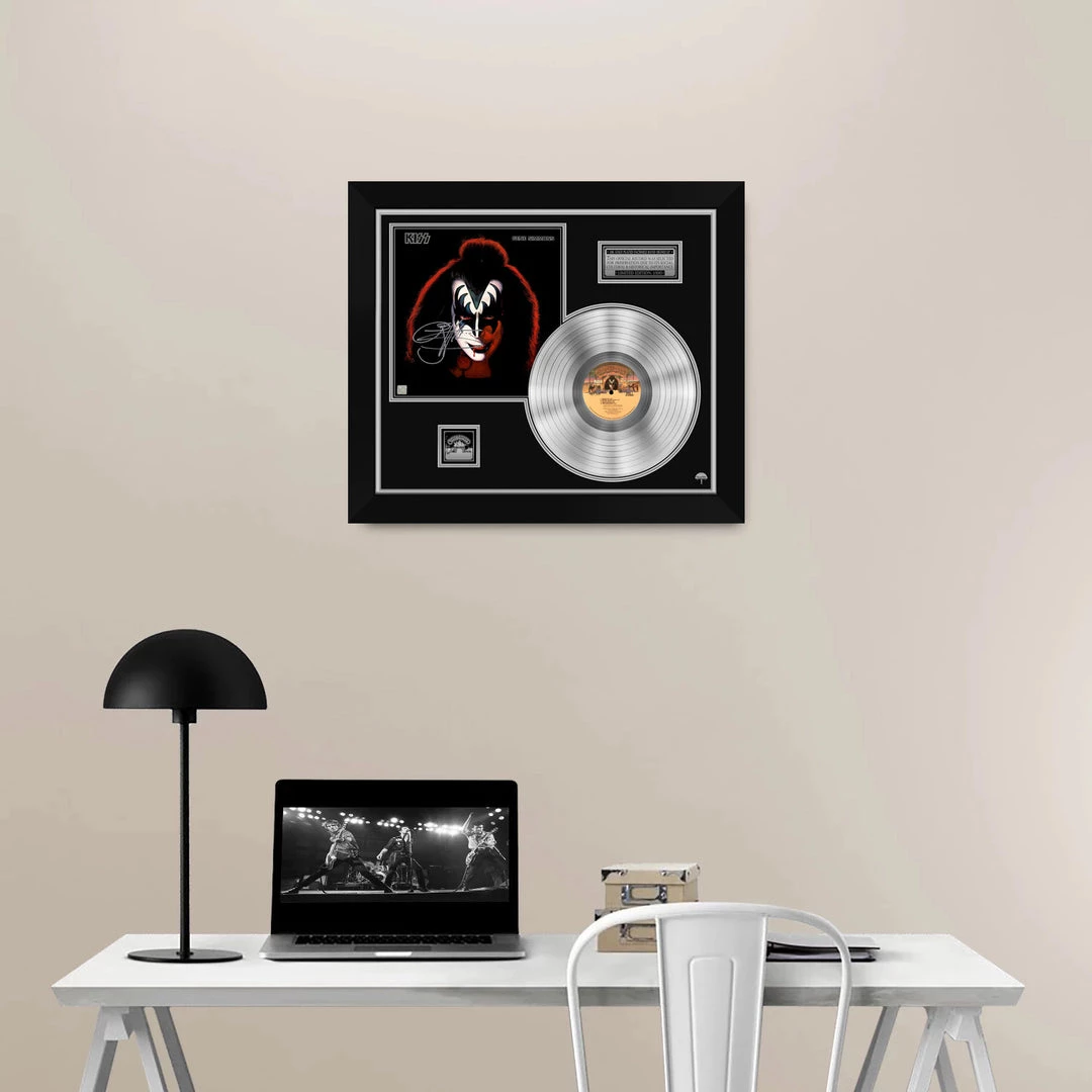 ƒ?? Collectible KISS Gene Simmons Solo Album facsimile of hand-signed Platinum Plated LP Custom Frame