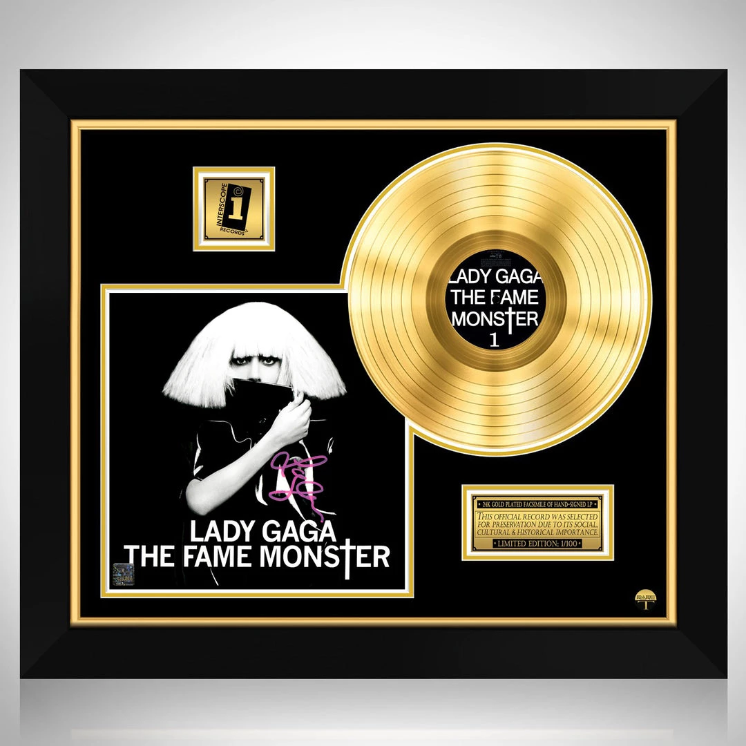 Pay homage to one of the greatest female artist of all time, Lady Gaga, with this gallery-framed, authentic, Interscope Records fully licensed facsimile of the official Hand-Signed 24k Gold Plated LP Record and LP Cover The Fame Monster, originally signed by Lady Gaga, of which is strictly limited to 100 units Worldwide and has been approved and numbered accordingly.