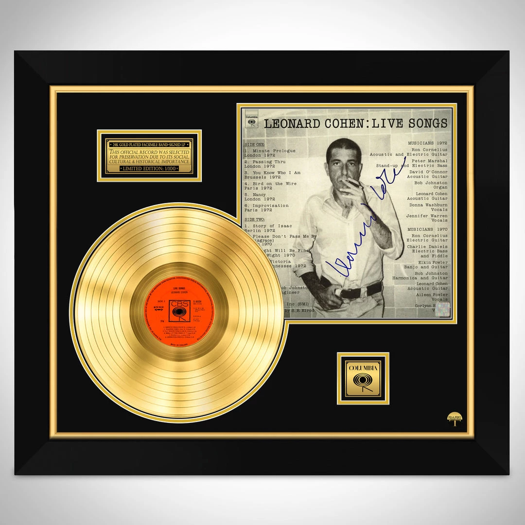 ฦ?? Collectible Facsimile Leonard Cohen Live 24k Gold Plated LP Custom Frame